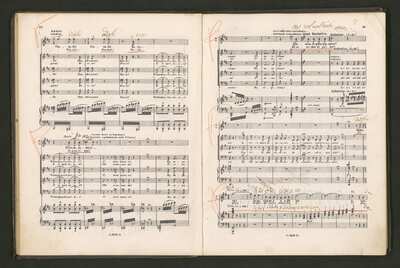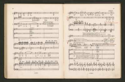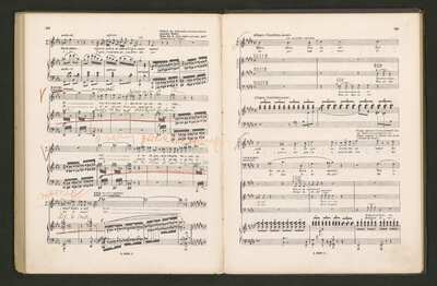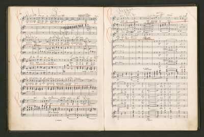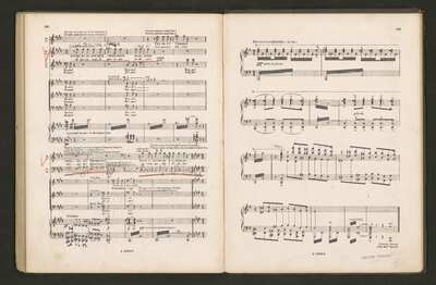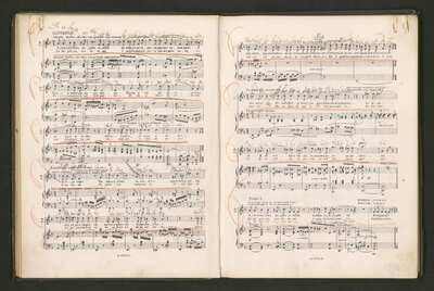 [pl-text: Mała czerwona okrągła pieczęć: otok: „ * TEATR WIELKI w Warszawie *”, pole: „Muzeum | Teatralne”], Small red round stamp: " *TEATR WIELKI w Warszawie * Muzeum | Teatralne”., [pl-text: Duża czerwona okrągła pieczęć: otok: „TEATR WIELKI w Warszawie”, pole: „Muzeum | Teatralne” s. 138]., Big red round stamp: " *TEATR WIELKI w Warszawie * Muzeum | Teatralne” p. 138, [pl-text: Prostokątna nalepka: „MUZEUM TEATRALNE W | WARSZAWIE” na tyle oprawy.], Rectangular sticker: " MUZEUM TEATRALNE W | WARSZAWIE" on back.