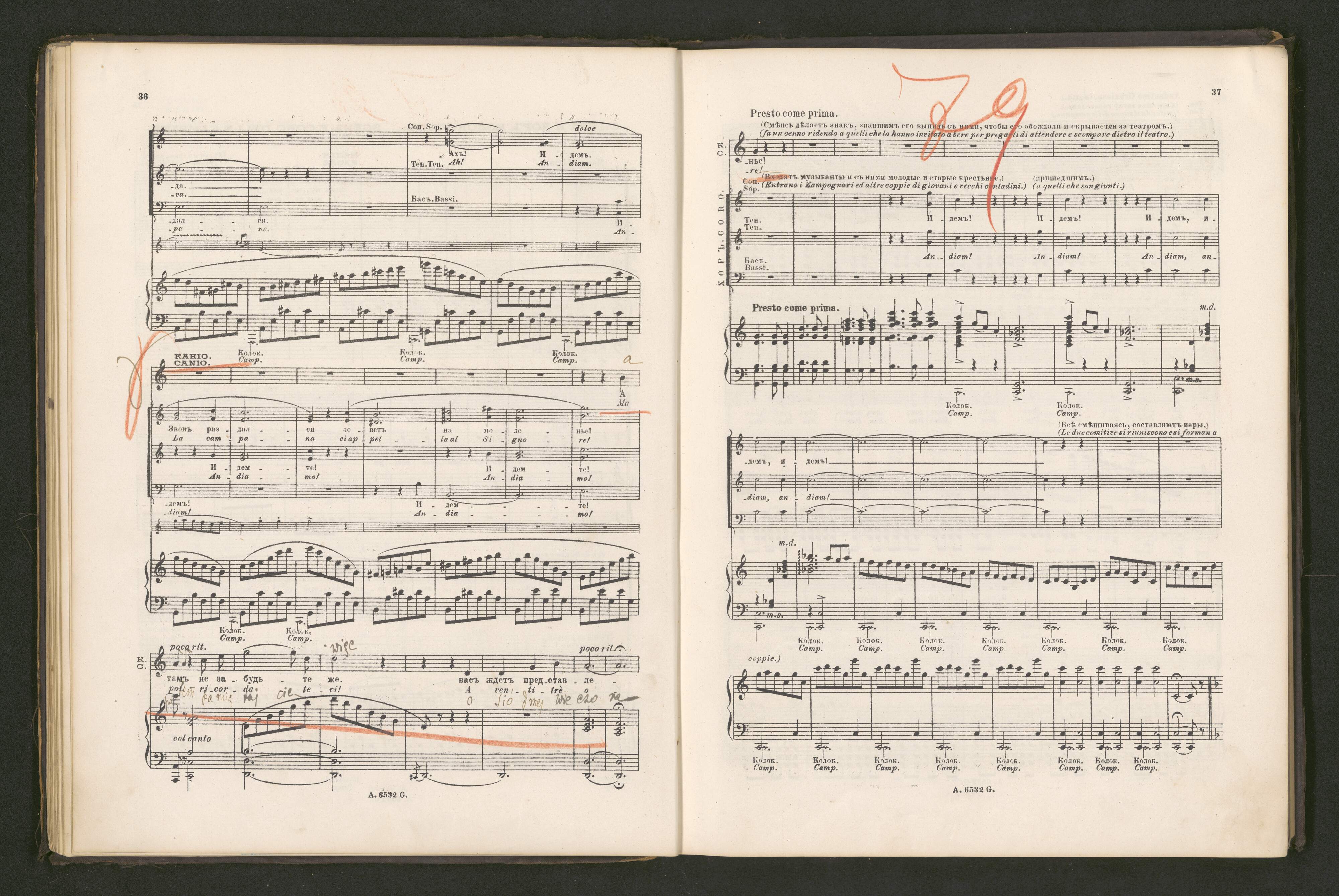 ИЗДАНIЕ А.ГУТХЕЙЛЬ | Р. ЛЕОНКАВАЛЛО. | PAGLIACCI | (ПАЯЦЫ) | ДРАМА | ВЪ ДВУХЪ ДѢЙСТВIЯХЪ | Перевод собственность издателя. | Москва у А.Гутхейль | Поставщика Двора ЕГО ИМПЕРАТОРСКОГО ВЕЛИЧЕСТВА и коммисiонера ИМПЕРАТОРСКНХЪ театровъ | на Кузнецкомъ мосту домъ 16. | S-Петербургъ А.Iогансенъ невский проспектъ № 68. | Кiевъ у Л. Идзиковскаго. Варшава у Гебетнеръ и Волфъ. | Лит ВГроссе Москва Больш. Спасская ул. соб. д.| НЗДАНIЕ ДЛЯ ФОРТЕПIАНО ВЪ 2 РУКИ 1P.50K.nett
