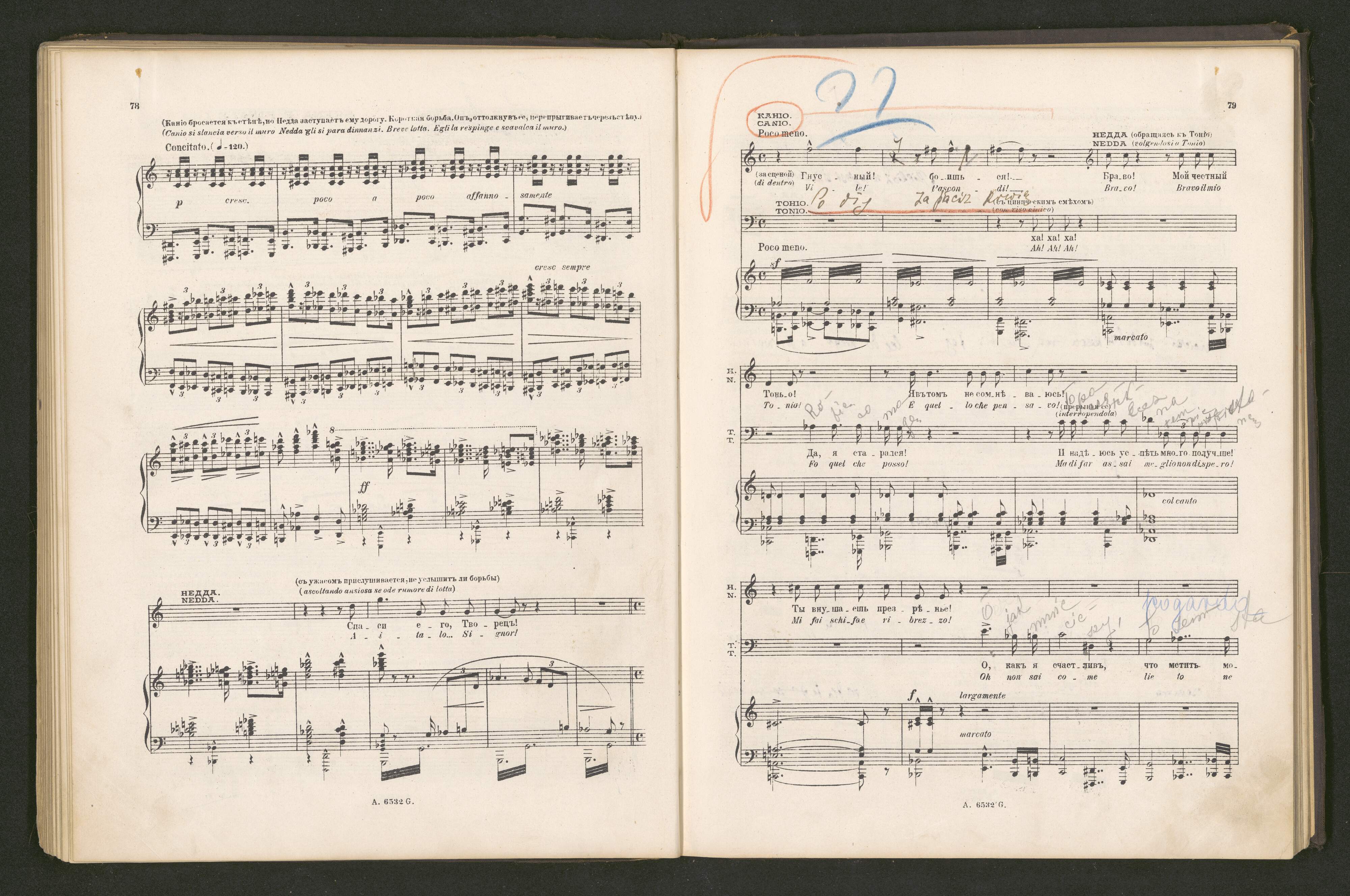 ИЗДАНIЕ А.ГУТХЕЙЛЬ | Р. ЛЕОНКАВАЛЛО. | PAGLIACCI | (ПАЯЦЫ) | ДРАМА | ВЪ ДВУХЪ ДѢЙСТВIЯХЪ | Перевод собственность издателя. | Москва у А.Гутхейль | Поставщика Двора ЕГО ИМПЕРАТОРСКОГО ВЕЛИЧЕСТВА и коммисiонера ИМПЕРАТОРСКНХЪ театровъ | на Кузнецкомъ мосту домъ 16. | S-Петербургъ А.Iогансенъ невский проспектъ № 68. | Кiевъ у Л. Идзиковскаго. Варшава у Гебетнеръ и Волфъ. | Лит ВГроссе Москва Больш. Спасская ул. соб. д.| НЗДАНIЕ ДЛЯ ФОРТЕПIАНО ВЪ 2 РУКИ 1P.50K.nett