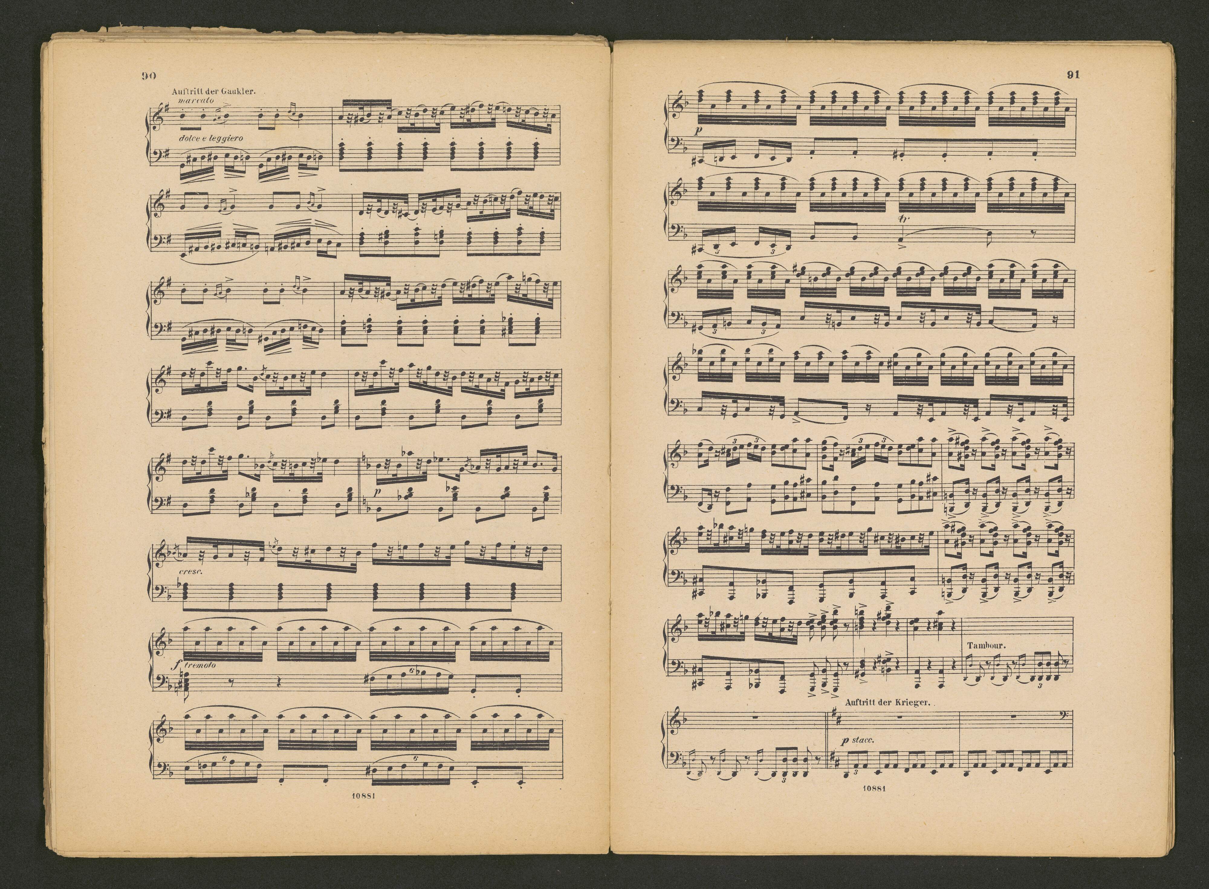 [title page:] Die | Afrikanerin | (L'Africaine) | Oper in 5 Acten. | Musik von | G. MEYERBEER | Klavier-Auszug zu zwei Händen | Eigenthum der Verleger. | Berlin & Posen. | [on the left column] Leipziger Strasse 37. | Unterden Linden 27. || [on the right column] Wilhalm Strasse 2. | Mylius Hotel. | [back in the middle] ED. BOTE & G. BOCK, | [on the left column] Breslau, | Lichtenberg. | [on the right column] Stettin, Simon. | [back in the middle] Hof-Musikhandlung J. J. M. M. des Königs u. der Königin u. S. K. H. des Prinzen Albrecht von Preufsen. | Leipzig: Leede.| Eingetragen gemäß den Vorschriften der internationalen Vertäge. | Paris, Brandus & C|i|e. | Lith.von C. G. Röder, Leipzig