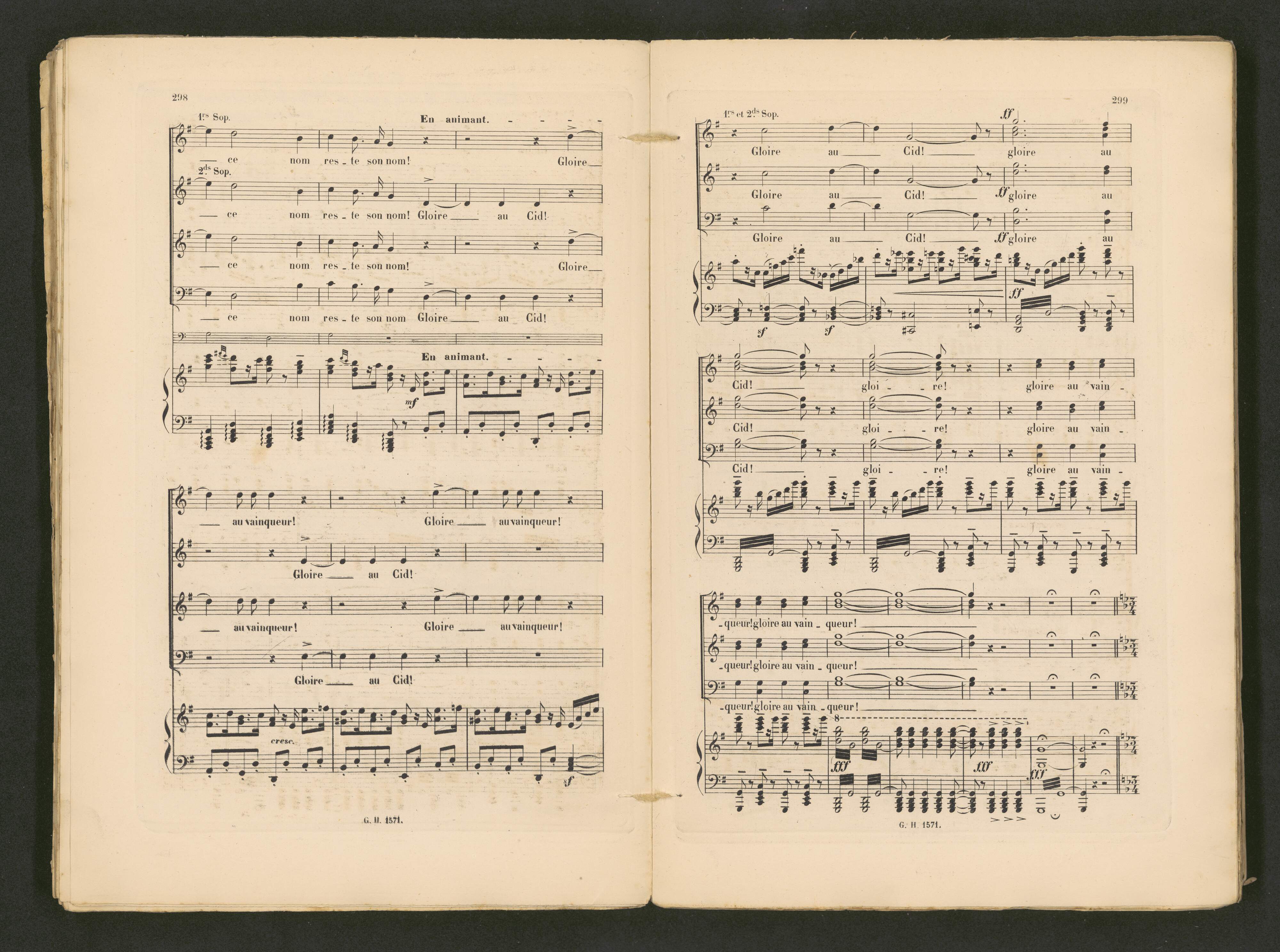 ACADÉMIE NATIONALE DE MUSIQUE | LE CID | OPÉRA | en quatre Actes & dix Tableaux | de M.M. | Ad.D'ENNERY, L.GALLET, ed Ed.BLAU | musique de | J. MASSENET | Partition Chant & Piano | Prix net: 20 |f. | PARIS HEUGEL & C.|i|e EDITEURS, | 2.|b|i|s Rue Vivienne | Droits de traduction de representation et de repreduction | réservés et enregistrés pour tous pays