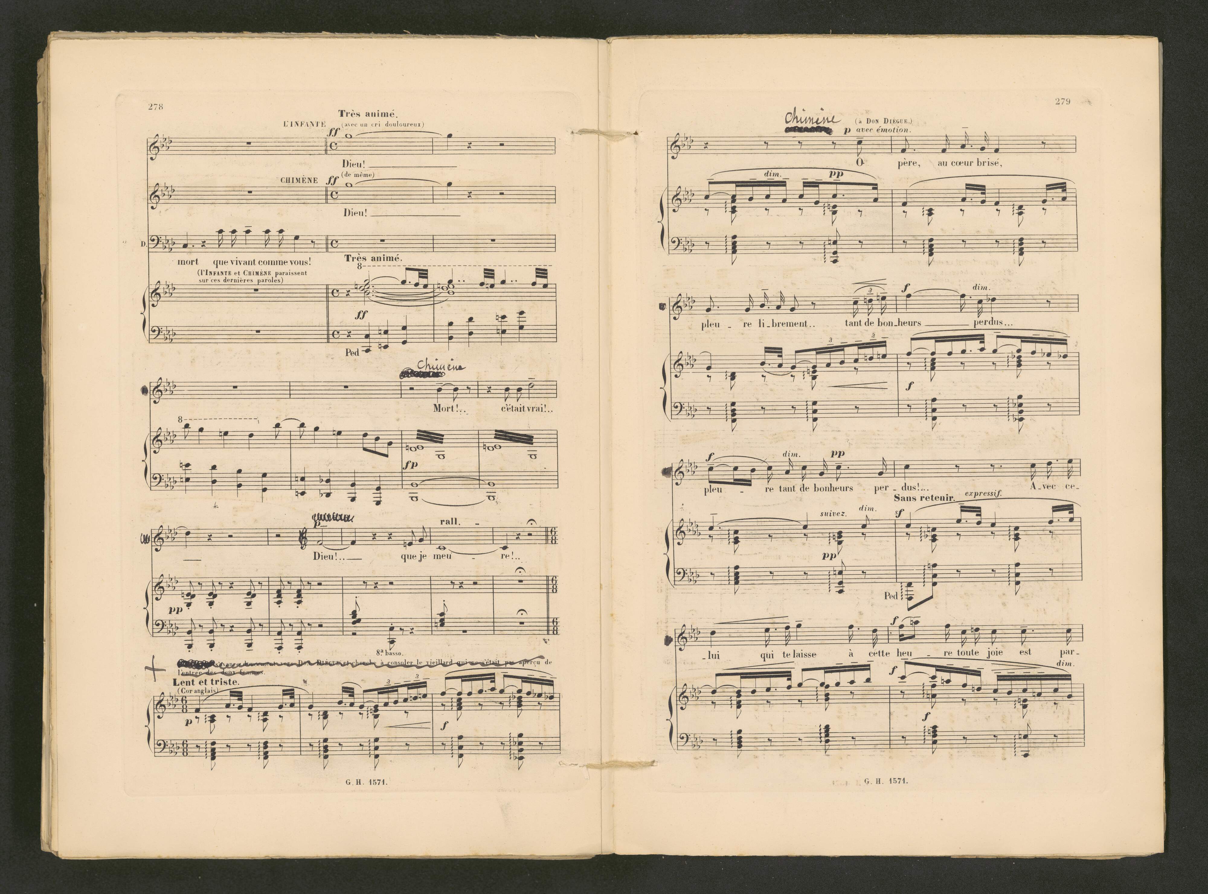 ACADÉMIE NATIONALE DE MUSIQUE | LE CID | OPÉRA | en quatre Actes & dix Tableaux | de M.M. | Ad.D'ENNERY, L.GALLET, ed Ed.BLAU | musique de | J. MASSENET | Partition Chant & Piano | Prix net: 20 |f. | PARIS HEUGEL & C.|i|e EDITEURS, | 2.|b|i|s Rue Vivienne | Droits de traduction de representation et de repreduction | réservés et enregistrés pour tous pays