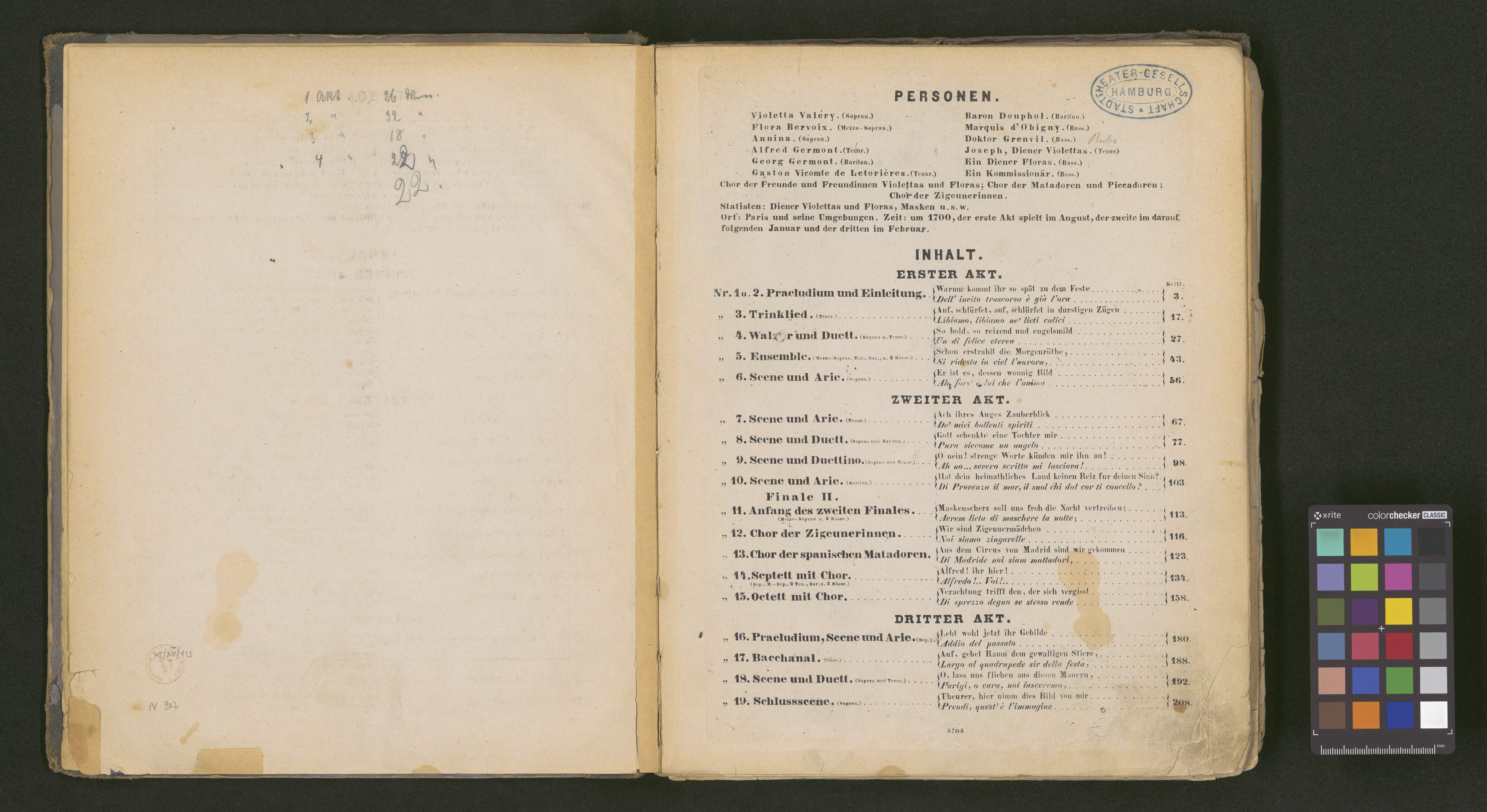 [cover title:] LA TRAVIATA | (VIOLETTA). | Oper in 3 Akten | M[usik von] | JOSEP[H VERDI] | VOLLSTANDIGER KLAVIERAUSZUG | mit deutschem und italienischem Texte