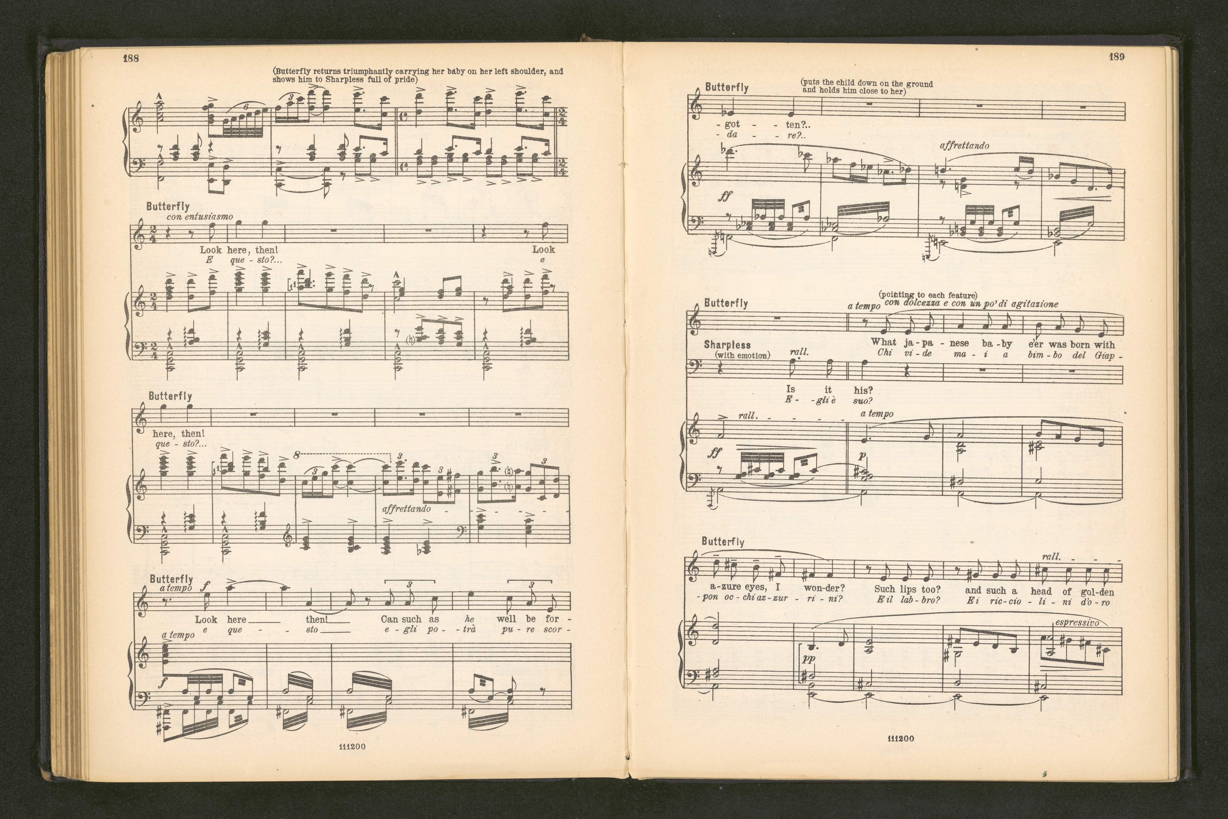 [cover title:] VOCAL SCORE | PRICE 8/=net | MADAM BUTTERFLY | A JAPANESE TRAGEDY FOUNDED ON THE BOOK BY JOHN L. LONG | AND THE DRAMA BY DAVID BELASCO MUSIC BY | GIACOMO PUCCINI | G. RICORDI & CO
