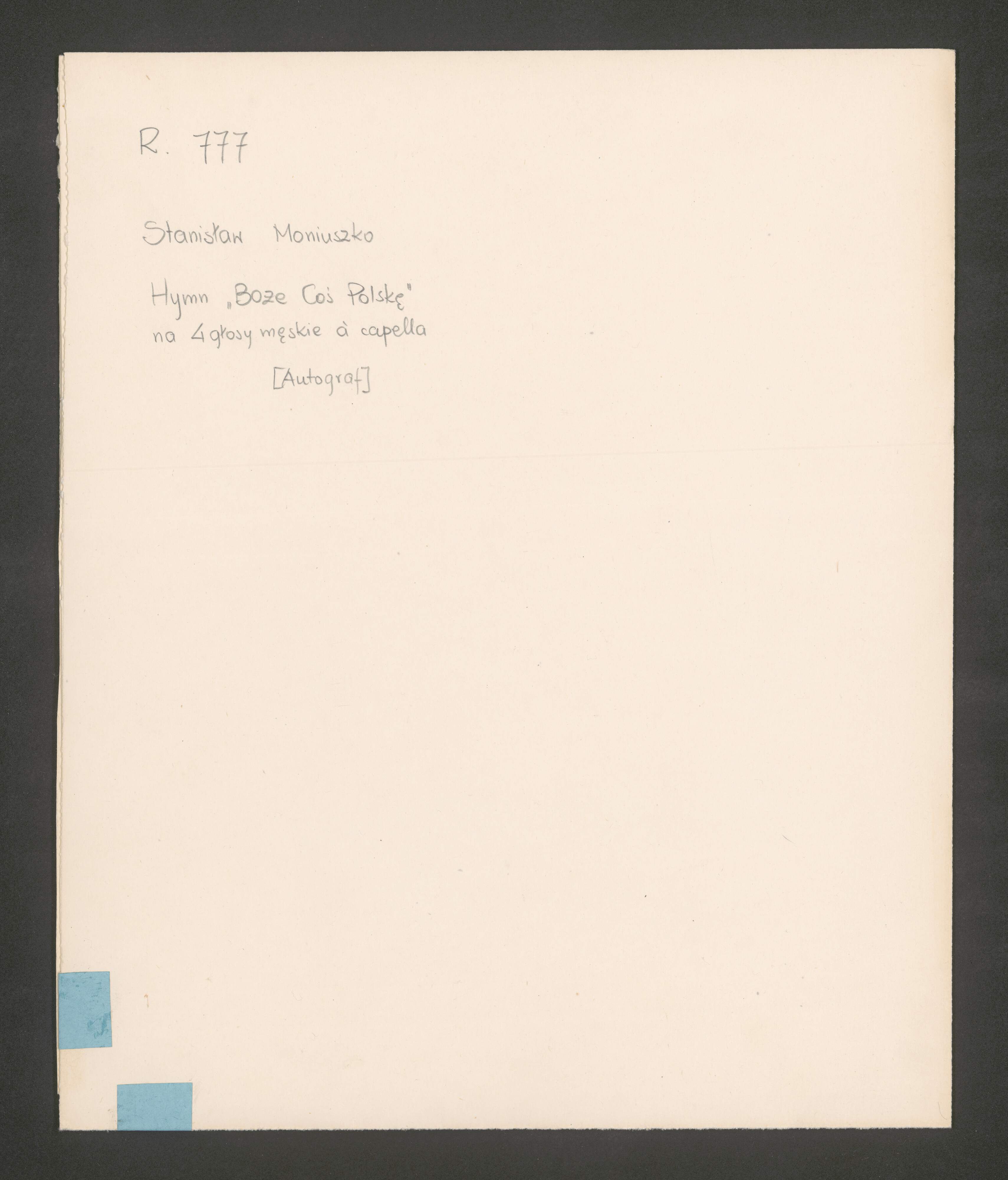 [caption title:] Cztéry męzkie głosy: | Na pamiątkę przepisał Stanisław Moniuszko