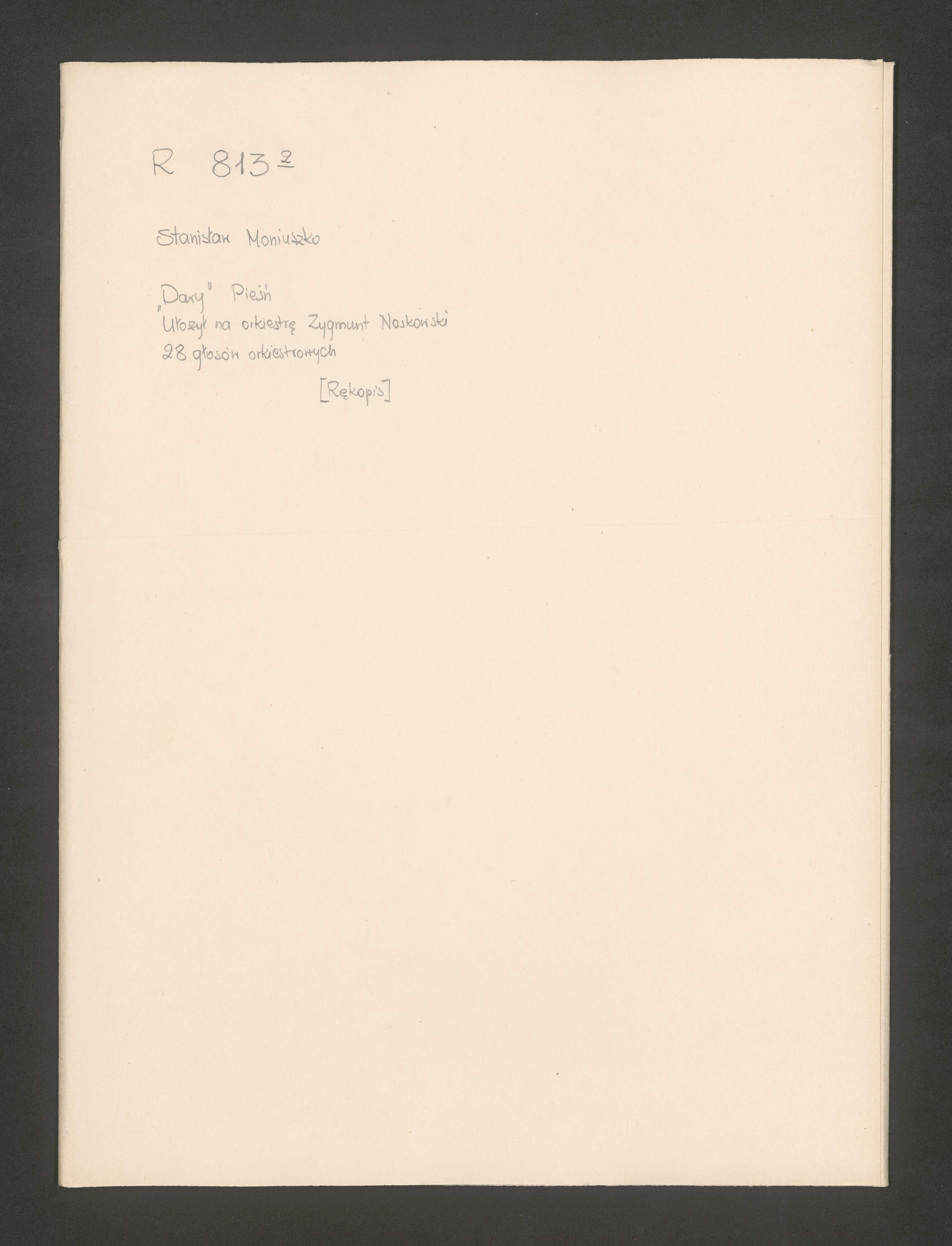 [caption title, vl 1:] „Dary” | Violino 1|m|o | Sta: Moniuszko | ułożył na orkiestrę Z. Noskowski