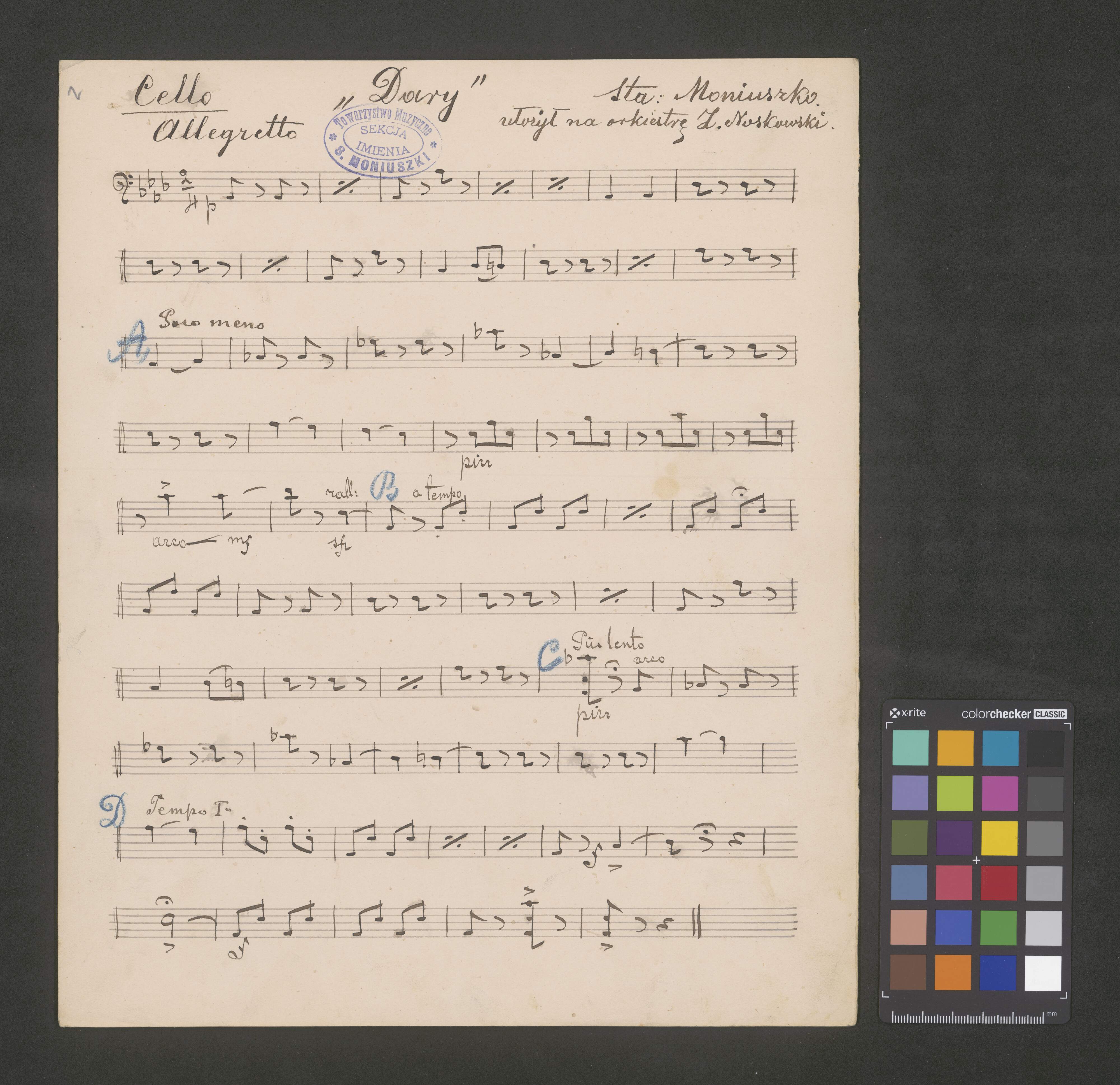 [caption title, vl 1:] „Dary” | Violino 1|m|o | Sta: Moniuszko | ułożył na orkiestrę Z. Noskowski