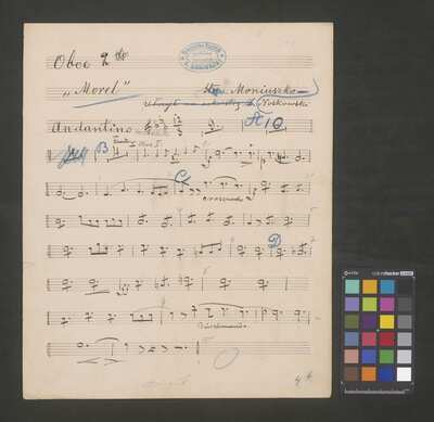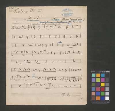 [pl-text: Niebieska owalna pieczęć „*Towarzystwo Muzyczne *| SEKCJA | IMIENIA | S. MONIUSZKI”.], Stamp: „*Towarzystwo Muzyczne *| SEKCJA | IMIENIA | S. MONIUSZKI”.