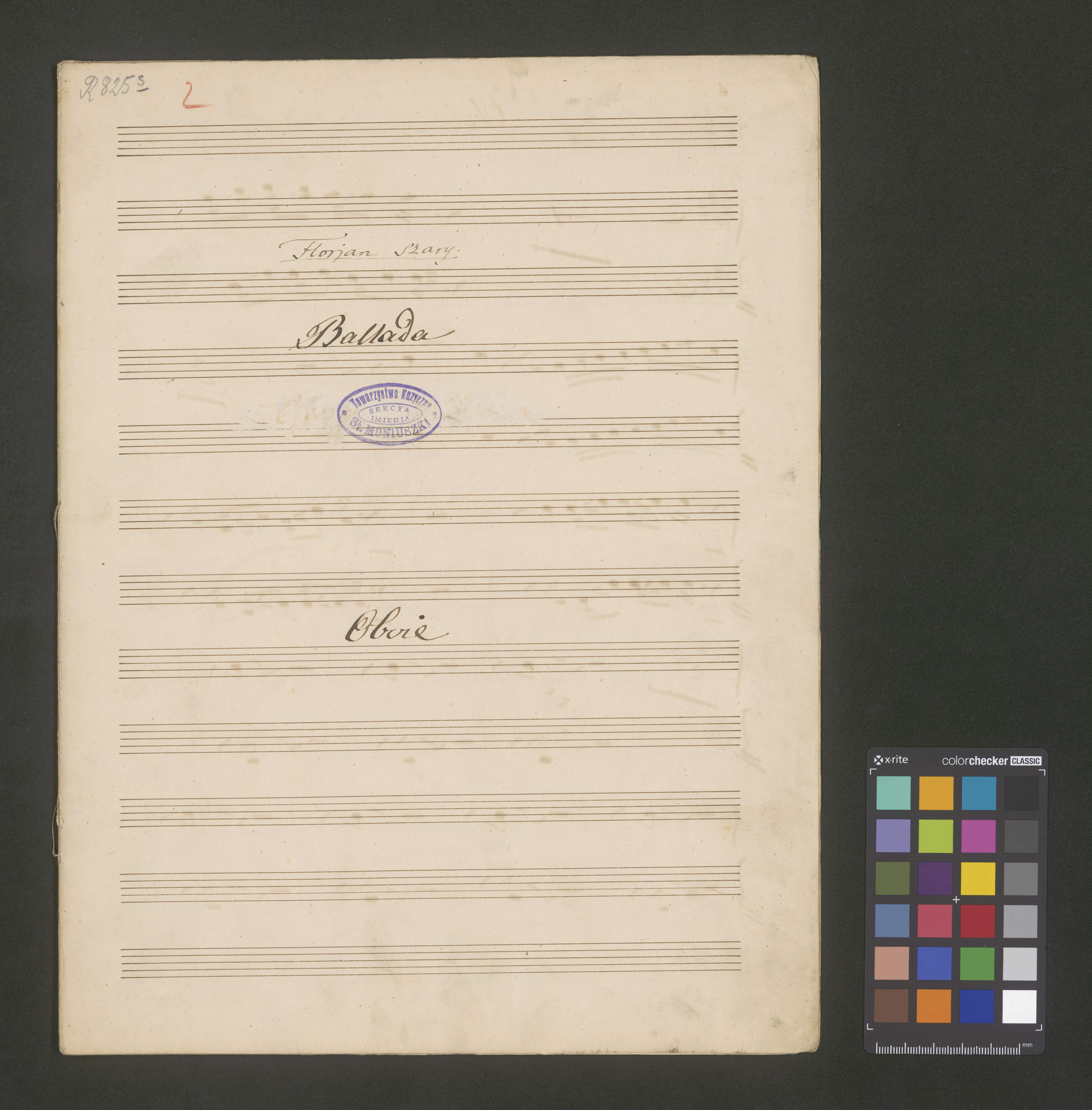 [title page, vl 1:] Florjan Szary. | Ballada | Tytuły w głosach | pojedynczych (25 głosów | niniejsze) | Floryan Szary | wypisane ręką Moniuszki | 4/VIII 1913 | Zah | Violino 1|m|o
