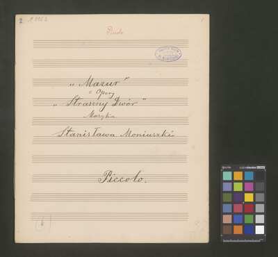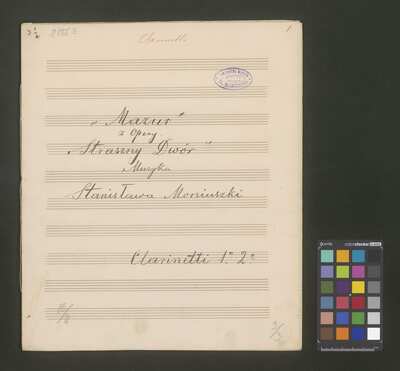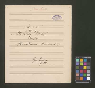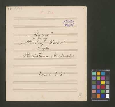 [title page, vl 1:] Violino I | „Mazur” | z O[per]y | „Straszny Dwór” | Muzyka | Stanisława Moniuszki | Violino 1|o, Straszny Dwór Excerpts orch