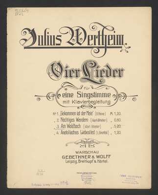 TP, [2] blank, 3-5 [musical text], [6] blank., [pl-text: Strona tytułowa, [2] pusta, 3-5 [tekst muzyczny], [6] pusta]., [pl-text: Fioletowa pieczęć na stronie tytułowej: "BIBLIOTEKA | Warszawskiego | Tow. Muzycz. | Nr"]., Purple stamp on the title page: "BIBLIOTEKA | Warszawskiego | Tow. Muzycz. | Nr"., [pl-text: Fioletowa pieczęć na stronie tytułowej: "dodatek drożyźniany 20%"]., Purple stamp on the title page: "dodatek drożyźniany 20%"., [pl-text: Fioletowa pieczęć na stronie tytułowej: "LEON IDZIKOWSKI | Skład Nut | WARSZAWA, | Marszałkowska 119."]., Purple stamp on the title page: "LEON IDZIKOWSKI | Skład Nut | WARSZAWA, | Marszałkowska 119."., KD | 7838 51042017