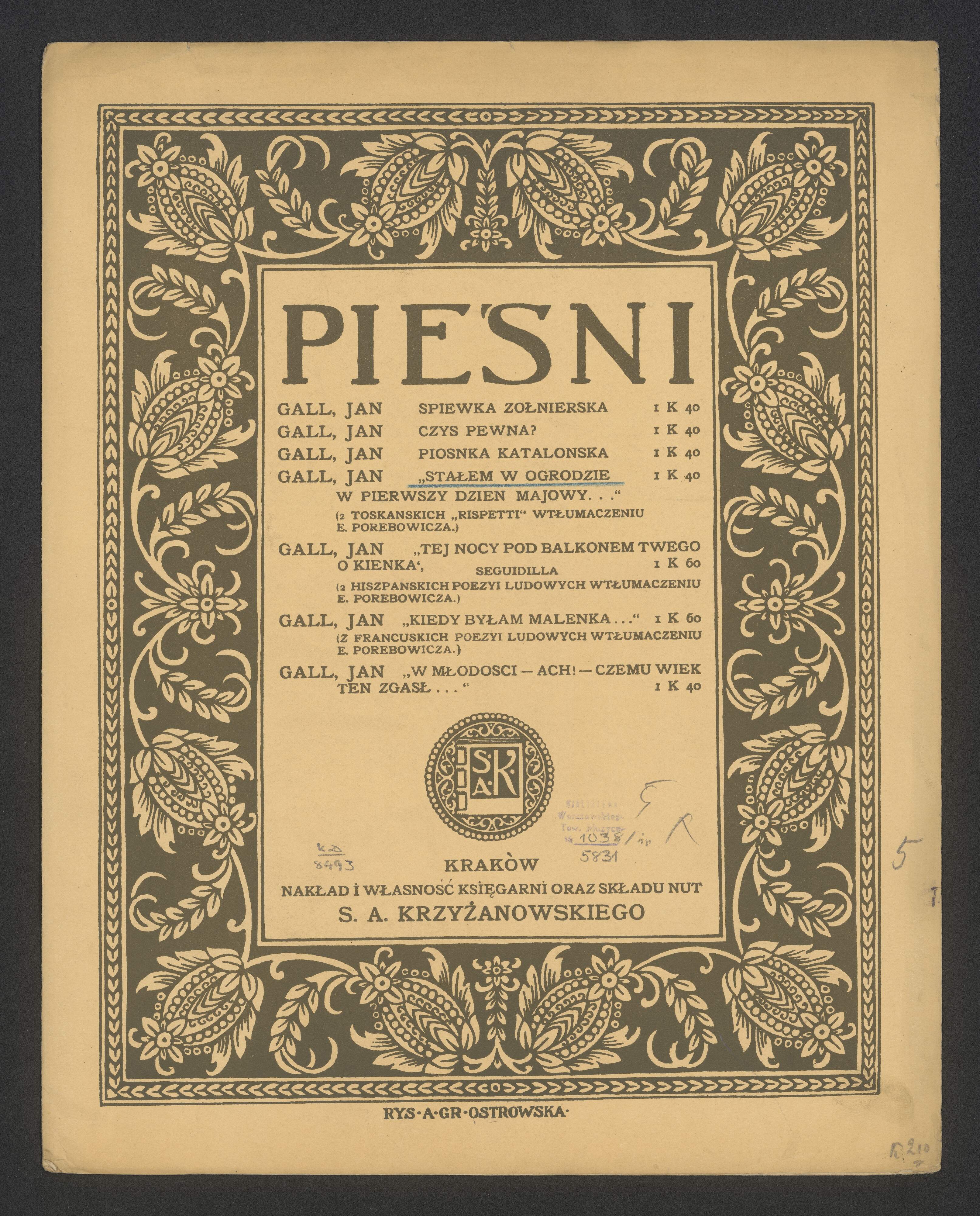 [p. 2, heading:] "Stałem w ogrodzie w pierwszy dzień majowy...." | (Z toskańskich "Rispetti" w tłumaczeniu E. Porębowicza.) | » Jan Gall