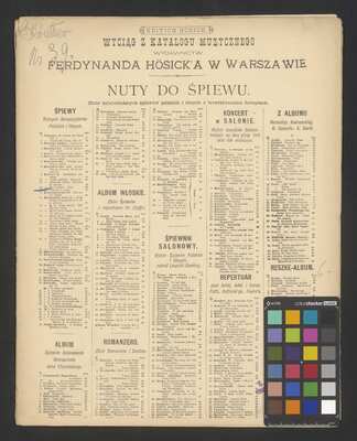 Purple stamp on the title page: "BIBLIOTEKA | Warszawskiego | Tow. Muzycz. | Nr"., [pl-text: Fioletowa pieczęć na stronie tytułowej: "BIBLIOTEKA | Warszawskiego | Tow. Muzycz. | Nr"]., Purple stamp on the title page: „S.A. KRZYŻANOWSKI | KSIĘGARNIA - SKŁAD NUT | KRAKÓW”., [pl-text: Pieczęć na stronie tytułowej: „S.A. KRZYŻANOWSKI | KSIĘGARNIA - SKŁAD NUT | KRAKÓW”]., Red stamp on the title page: "20% Dodatek drożyźniany"., [pl-text: Czerwona pieczęć na okładce: "20% Dodatek drożyźniany"]., Written in pencil on the last page: "Kratzer | Nr 39."., [pl-text: Napisane ołówkiem na ostatniej stronie: "Kratzer | Nr 39."]., KD | 9008 51043548