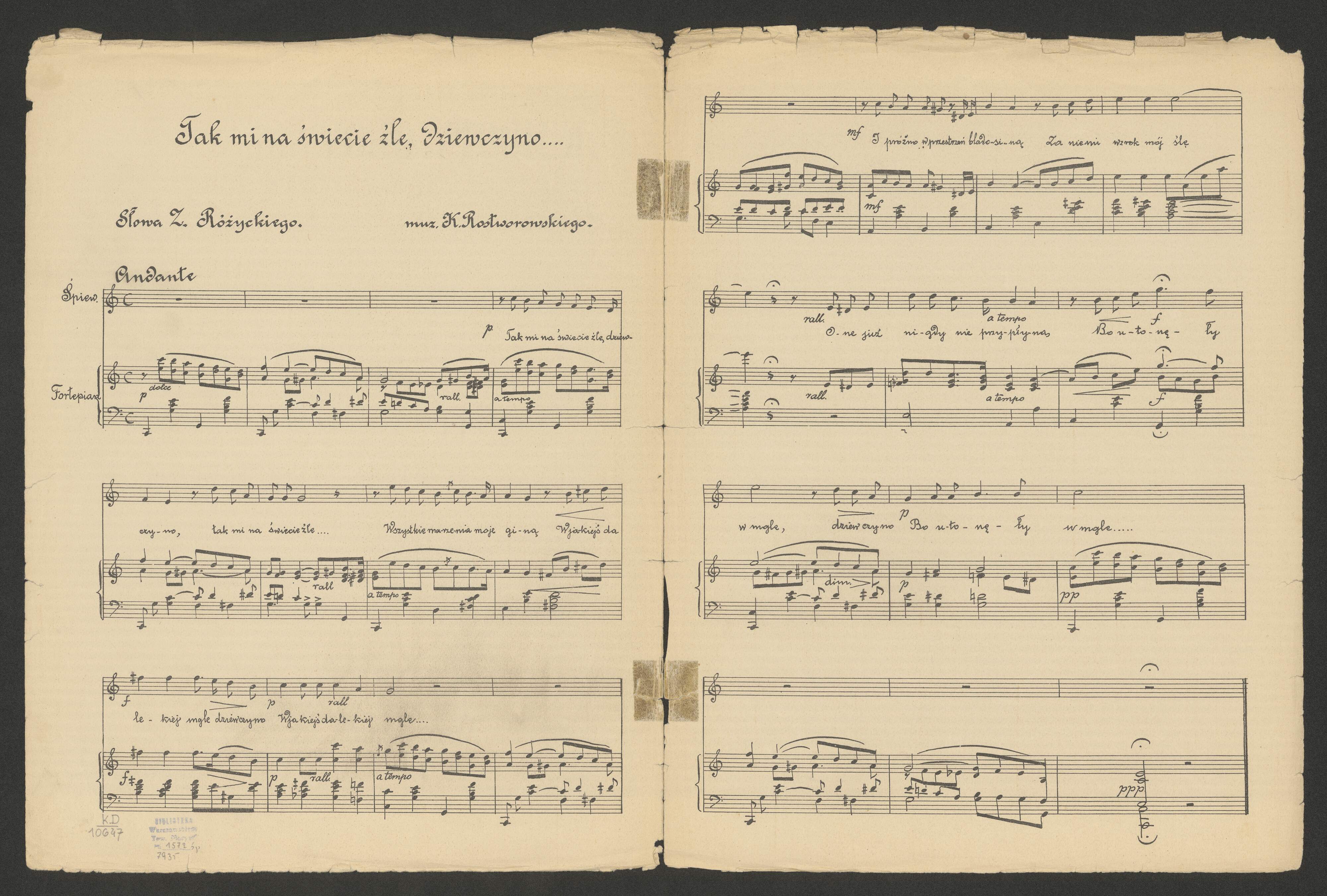 [page title:] K. ROSTWOROWSKI. | TAK MI NA ŚWIECIE ŹLE, DZIEWCZYNO... | ŚPIEW Z TOWARZYSZENIEM FORTEPIANU | Cena 40 kop. | Drukarnia i Litografia. | B A BUKATY | Warszawa ul. Wspólna 46