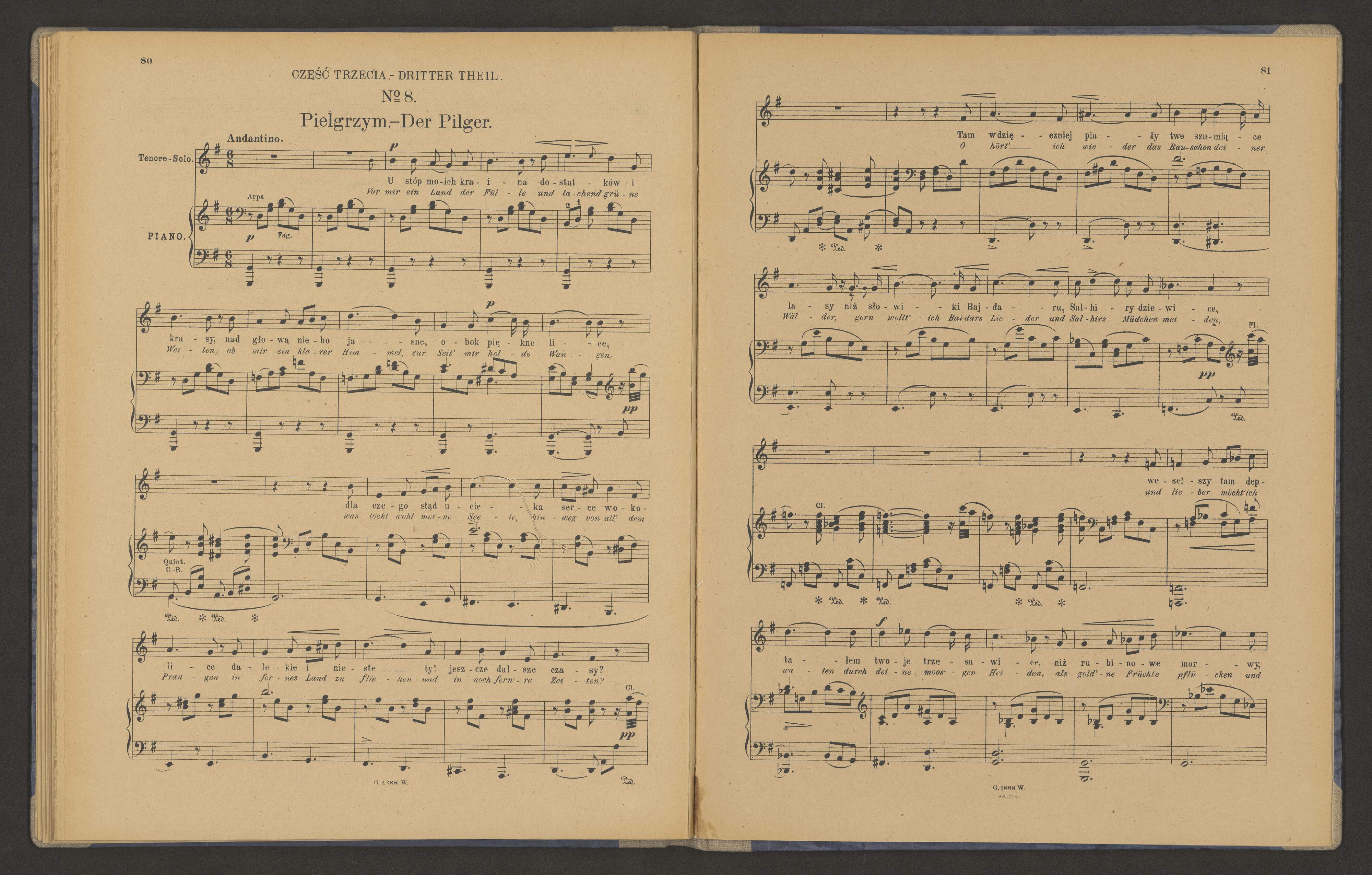 [cover title:] S. MONIUSZKO | SONETY KRYMSKIE | na Chór | czterogłosowy mieszany | z towarzyszeniem | Orkiestry lub Fortepianu | Warszawskie Towarzystwo Muzyczne. | Wydawnictwo i własność Sekcyi Imienia Moniuszki. | M. R. C|o Leipzig