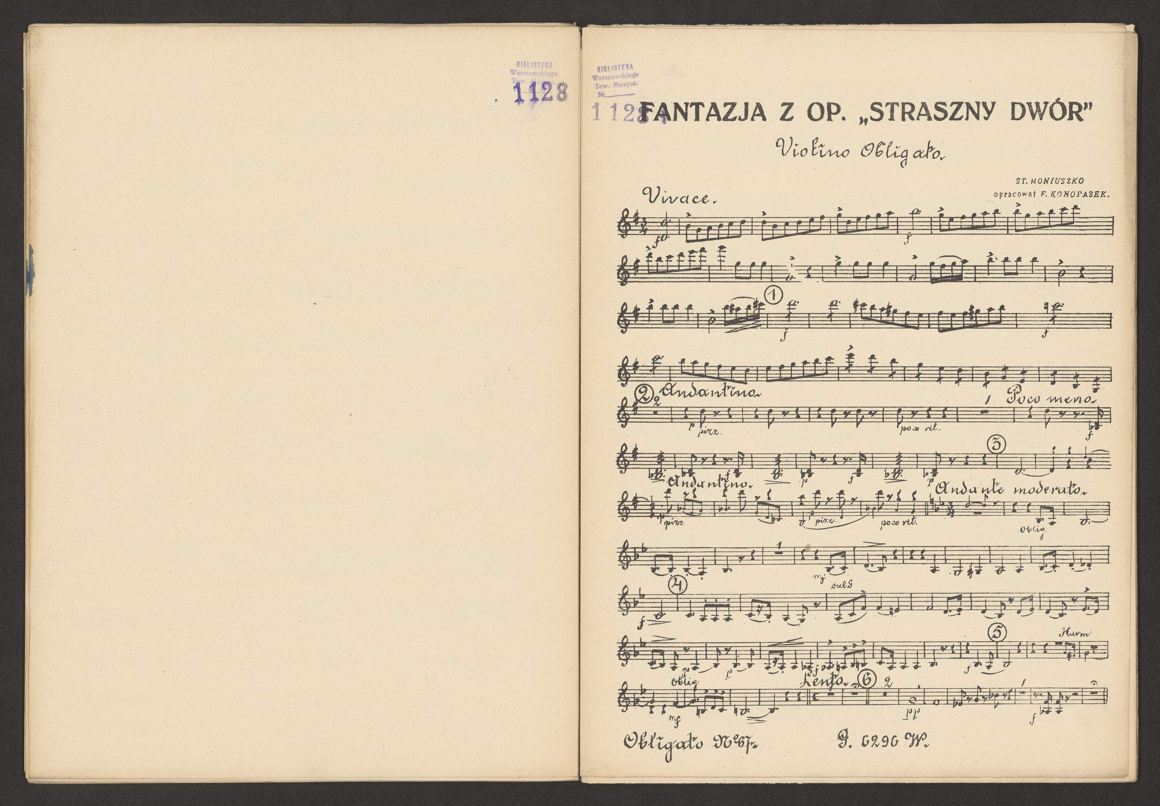 [title page:] STANISŁAW MONIUSZKO | FANTAZJA | z Opery | Straszny Dwór | Opracował | na orkiestrę salonową | FELIKS KONOPASEK | NAKŁAD I WŁASNOŚĆ | GEBETHNERA I WOLFFA | Warszawa-Kraków-Lublin-Łódź-Poznań | Wilno-Zakopane | Paris VIe. 123 Boulevard St. Germain 123. | New-York. The Polish Book Importing Co. Inc. | Zakł. Graf. B. Wierzbicki i S=ka, Warszawa