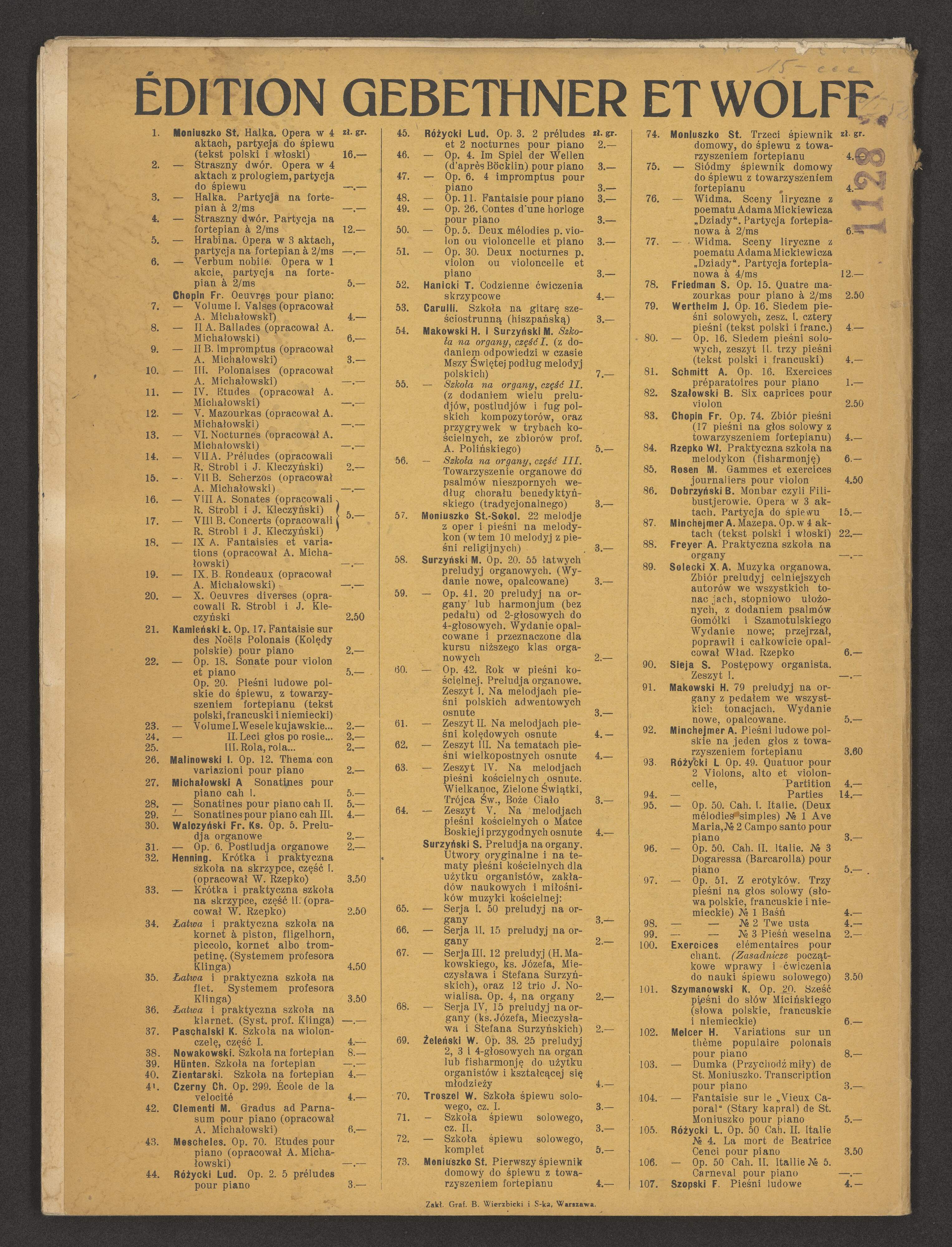 [title page:] STANISŁAW MONIUSZKO | FANTAZJA | z Opery | Straszny Dwór | Opracował | na orkiestrę salonową | FELIKS KONOPASEK | NAKŁAD I WŁASNOŚĆ | GEBETHNERA I WOLFFA | Warszawa-Kraków-Lublin-Łódź-Poznań | Wilno-Zakopane | Paris VIe. 123 Boulevard St. Germain 123. | New-York. The Polish Book Importing Co. Inc. | Zakł. Graf. B. Wierzbicki i S=ka, Warszawa