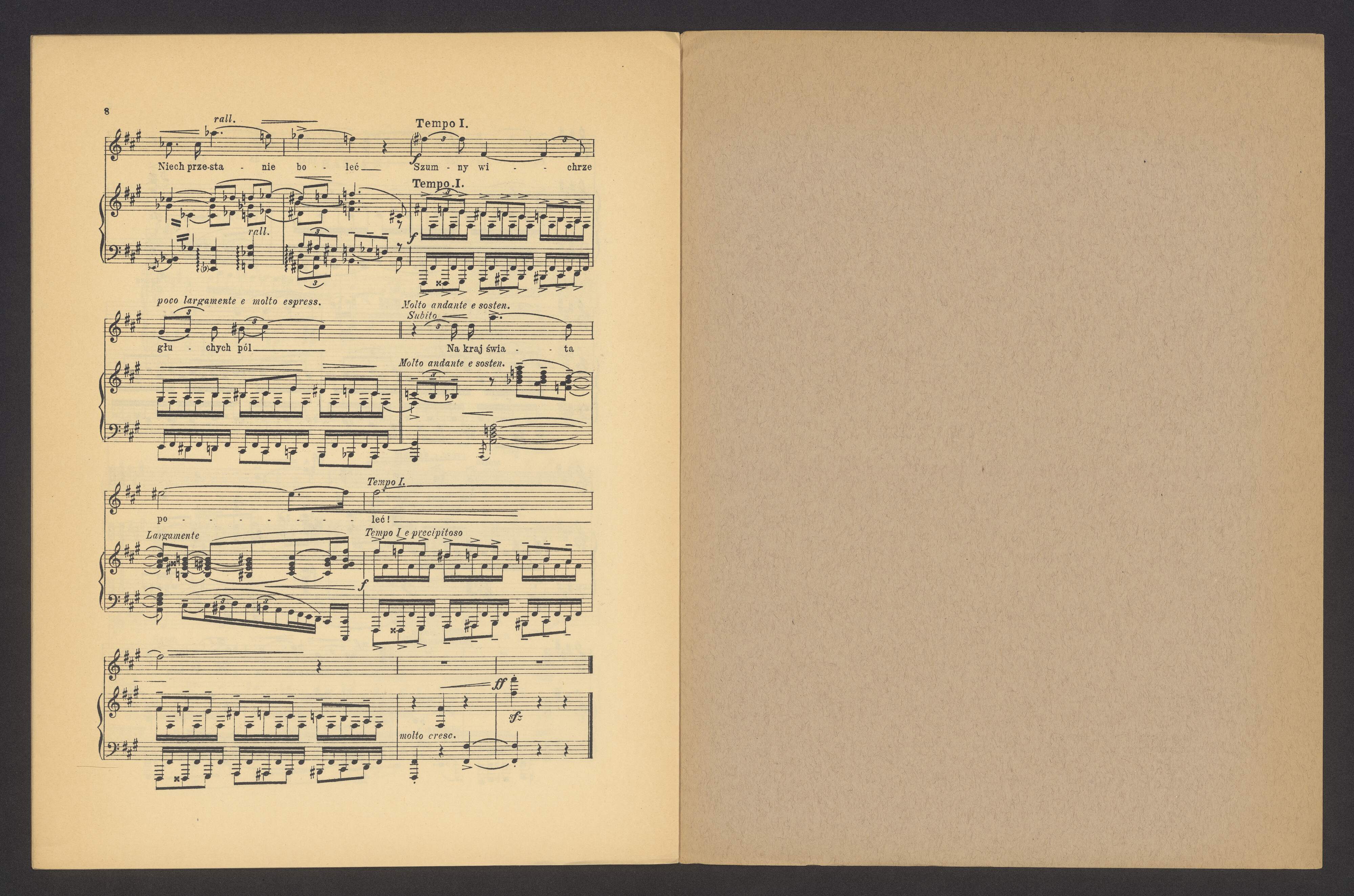 [title page:] STANISŁAW LIPSKI | Op. 18. | TRZY PIEŚNI | do słów | LUCJANA RYDLA | 1) Ani ty moja... [Hania VII] | 2) Na kwitnącej, na jabłoni... [Hania VIII] | 3) Szumny wichrze... (Hania X) | Nakład i własność autora | KRAKÓW 1931. | Skład główny | A. PIWARSKI I SKA. | W KRAKOWIE