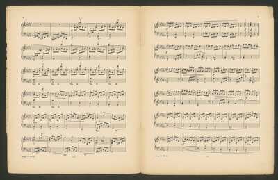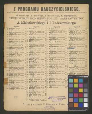 [pl-text: ostatnia strona zawiera wykaz utworów na fortepian], On the cover there is a stamp: „MIECZYSŁAW IDZIKOWSKI | SKŁAD i ANTYKWARIAT | Warszawa, ul. Krucza 46 | (róg Al. Jerozolimskich)”., [pl-text: na okładce widnieje pieczęć: „MIECZYSŁAW IDZIKOWSKI | SKŁAD i ANTYKWARIAT | Warszawa, ul. Krucza 46 | (róg Al. Jerozolimskich)”.], On the cover there is a stamp: „KSIĘGARNIA SKŁAD NUT | M, ARCTA | [illegible]”., [pl-text: Na okładce widnieje pieczęć: „KSIĘGARNIA SKŁAD NUT | M, ARCTA | [nieczytelne]”.]
