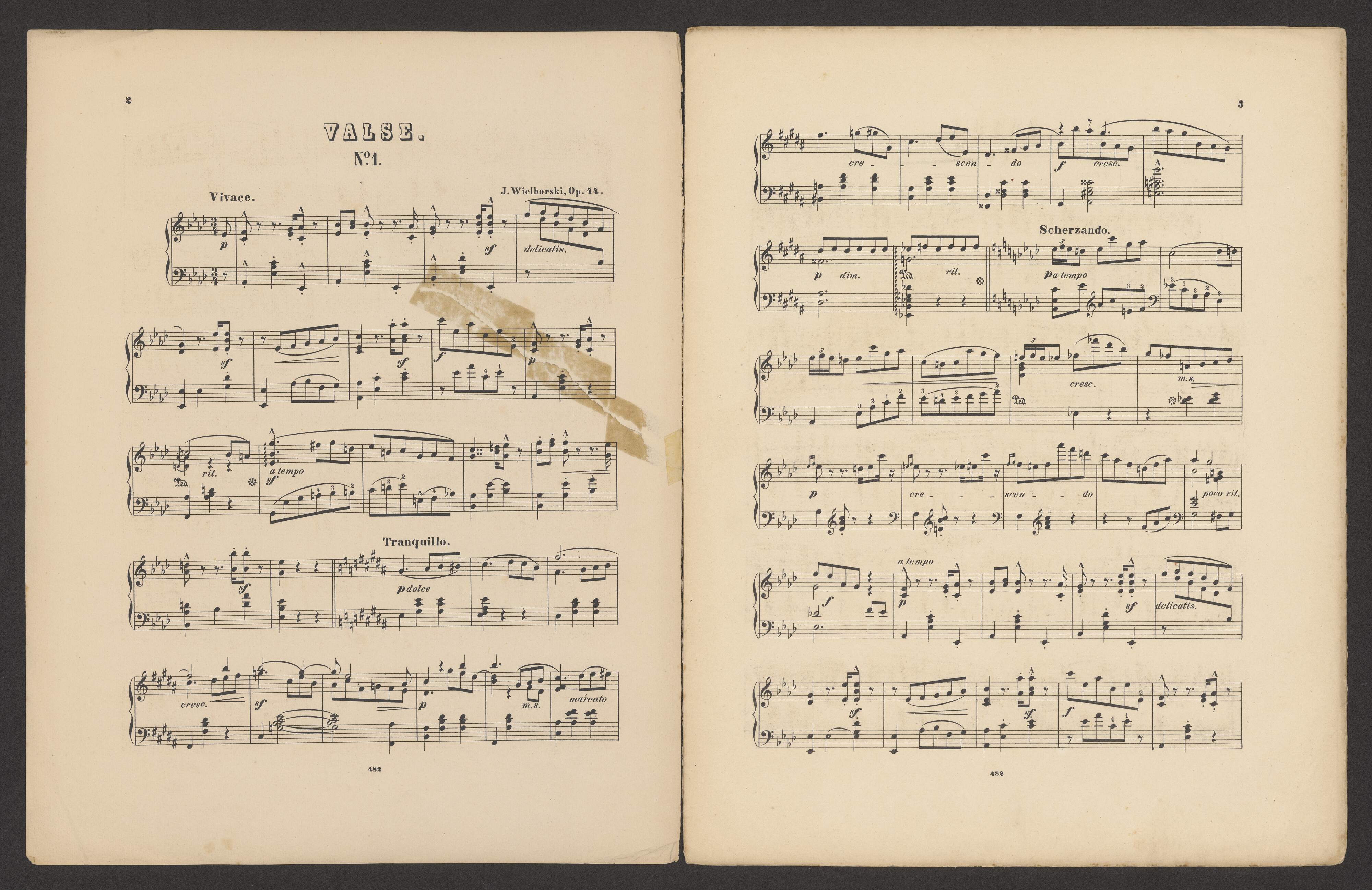 [title page:] à Madame Apolline de Winevitinoff | neè Comtesse Wielhorsky. | Deux Valses | pour le Piano | par | Le Comte Joseph Wielhorski. | Op. 44. | [space] Pr: 60 cop.[below] Mark 2. | VARSOVIE, | chez G. Sennewald. | St. PETERSBOURG, A. BÜTTNER. [space] MOSCOU, R. JÜRGENSON. | LEIPZIG, FR. HOFMEISTER. | Lith. Anst. v. C. G. Röder, Leipzig