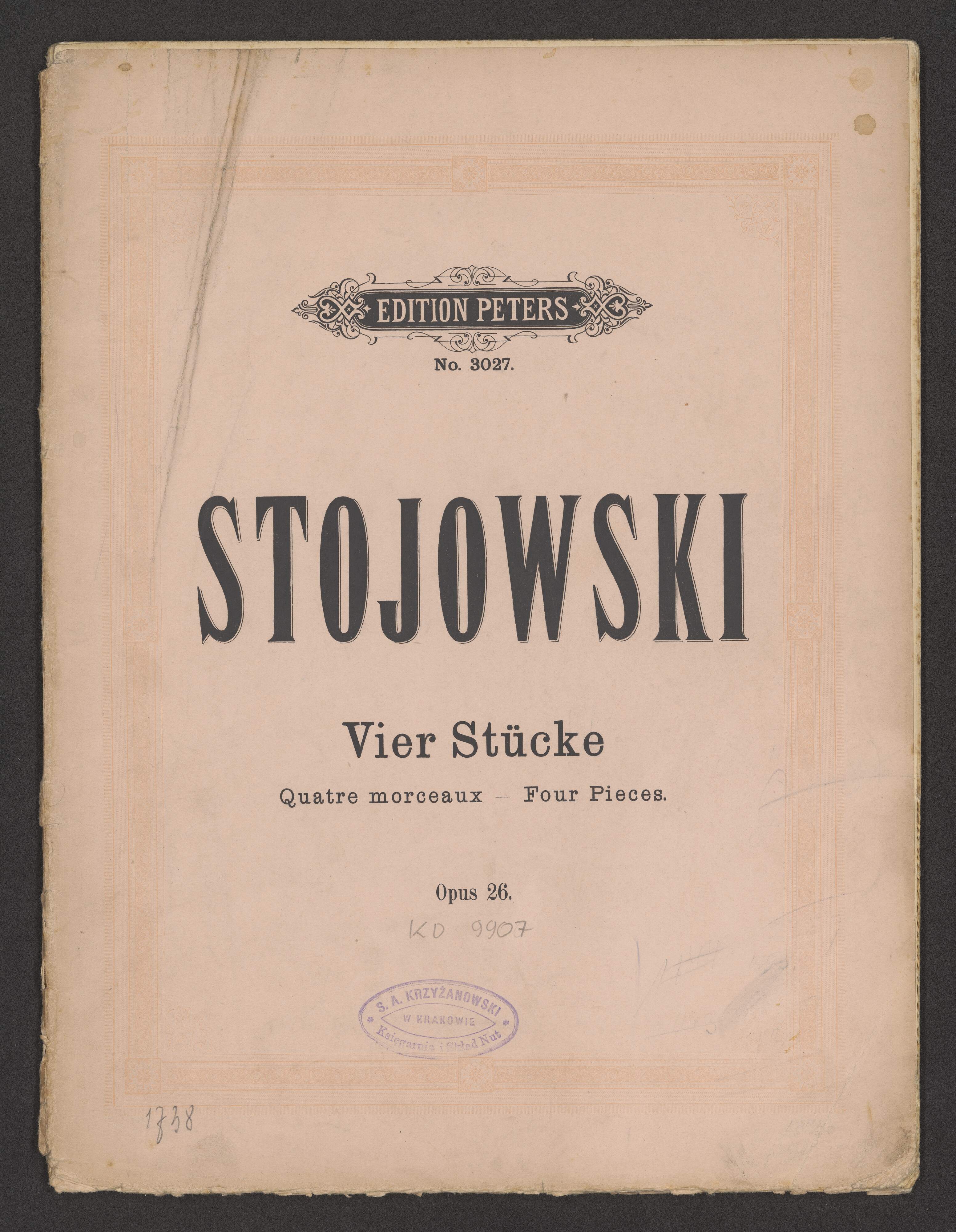 [cover title:] EDITION PETERS | No. 3027. | STOJOWSKI | Vier Stücke | Quatre morceaux - Four Pieces. | Opus 26