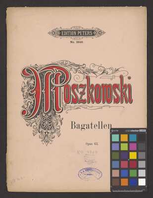[pl-text: Reklama wydawcy na s. [22]]., Publisher's advertisement on p. 22., [pl-text: Na str. tytułowej okrągła fioletowa pieczęć: [S.A. KRZYŻANOWSKI | W KRAKOWIE | Księgarnia i skład Nut].], [pl-text: Na str. tytułowej fioletowa pieczęć: [BIBLIOTEKA | Warszawskiego | Tow. Muzyczn. Nr.] i odręczna adnotacja ołówkiem z sygnaturą.]