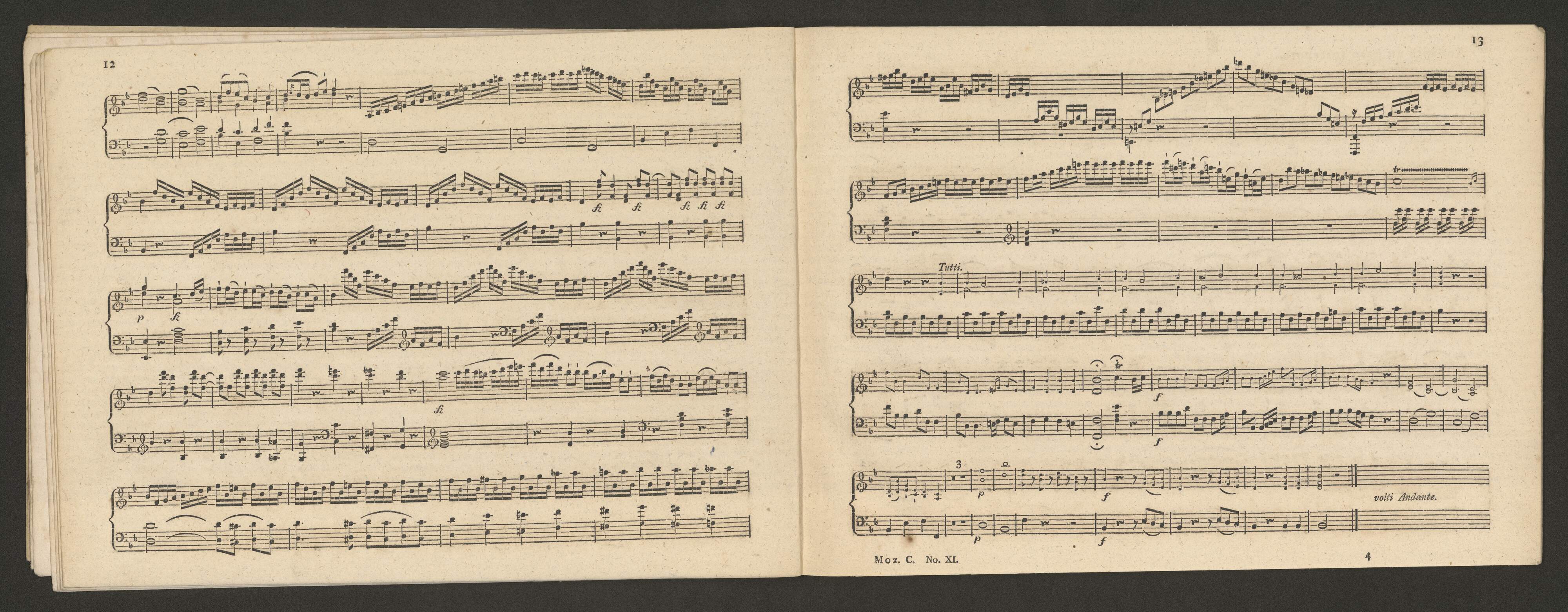 [Umschlag: Œuvres de W. A. Mozart. Concert pour le pianoforte, N|o 11]. Concert pour le pianoforte [B], avec accompagnement de 2 violons, alto et basse, flûte, 2 hautbois, 2 bassons, 2 cors, par W. A. Mozart. N|o 11 [Leipzig, Breitkopf & Härtel]