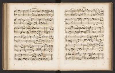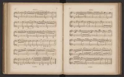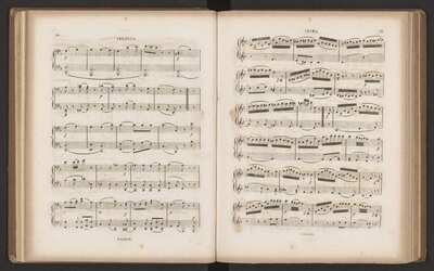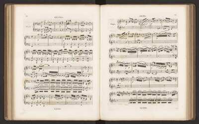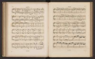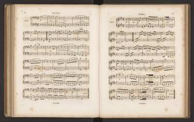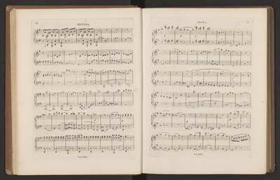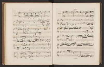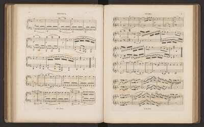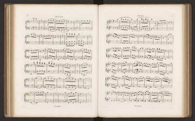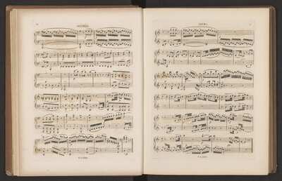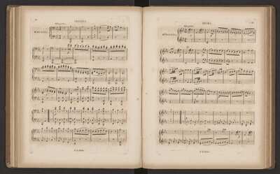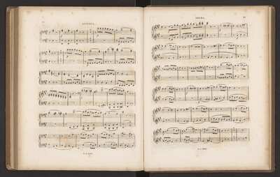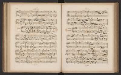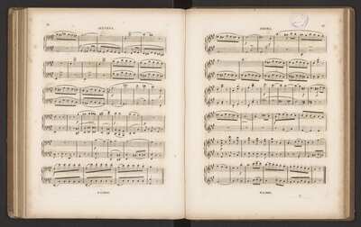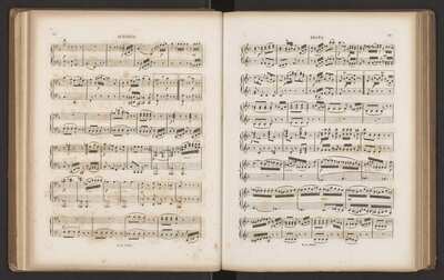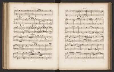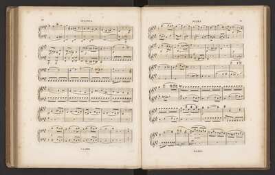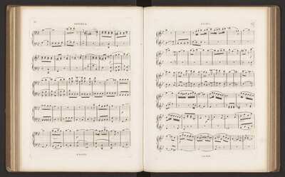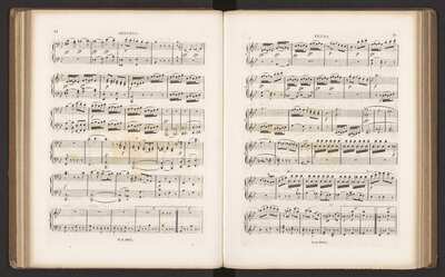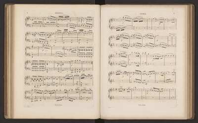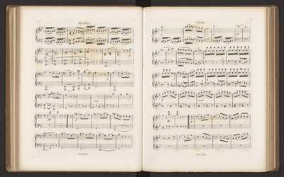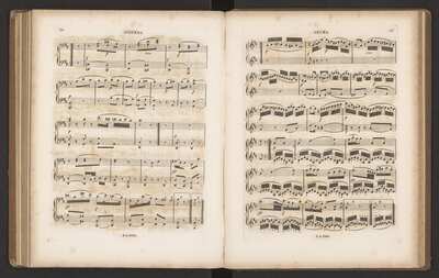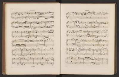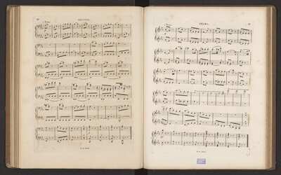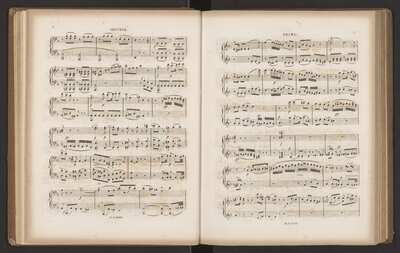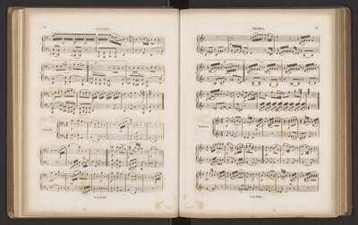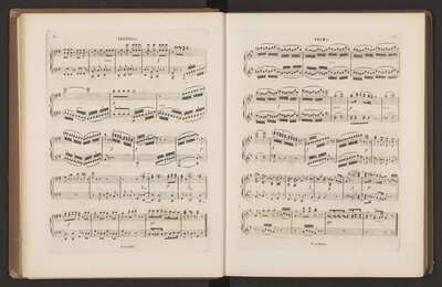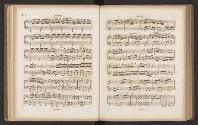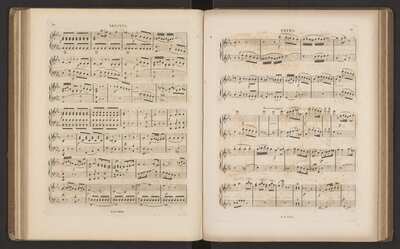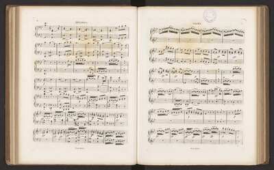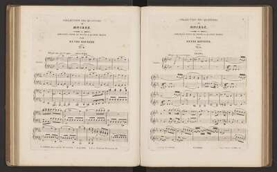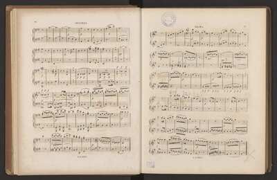 Collection covered with cover. On the back of the cover a sticker printed: "Biblioteka Państwowej Wyższej | Szkoły Muzycznej - Warszawa" with the current signature inscribed below., [pl-text: Zbiór obłożony okładką. Na odwrocie okładki naklejka z nadrukiem: "Biblioteka Państwowej Wyższej | Szkoły Muzycznej - Warszawa" z wpisaną poniżej aktualną sygnaturą.], Round blue/purple stamp: "Państwowa Wyższa Szkoła Muzyczna w Warszawie | BIBLIOTEKA |Nr" with number "42195 | Cim." on the reverse of the first title page (under the seal in pencil: "XVII-426"), on p. 17 of the first printing (no number); on p. 17 of the third printing (no number); on p. 17 of the fourth printing (no number); on p. 17 of the fifth printing (no number), and on p. 55 with the number "42195 a"; Small rectangular blue stamp: 'Bibl. | P.W.S.M. | w W-wie" on pp. 17, 41 of the first printing; pp. 17, 33 of the second printing; Blue oval stamp: 'BIBLIOTEKA GŁÓWNA Akadem. Muzyczna im. Fr. Chopina | w Warszawie | Nr' with number "42195 d" on the back of the title page of the second printing; with number "42195 c" on the back of the title page of the third printing; with number "42195 b" on the back of the title page of the fourth printing; with number "42195 a" on the back of the title page of the fifth printing; small, blue, rectangular stamp: 'BIBLIOTEKA GŁ. | AM im. Fr. Chopina | w Warszawie" on p. 41 of the third printing; on p. 41 of the fourth printing., [pl-text: Okrągła niebieska/fioletowa pieczęć: "Państwowa Wyższa Szkoła Muzyczna w Warszawie | BIBLIOTEKA |Nr" z numerem "42195 | Cim." na odwrocie pierwszej k. tytułowej (pod pieczęcią ołowkiem: "XVII-426"), na str. 17 pierwszego druku (bez numeru); na str. 17 trzeciego druku (bez numeru); na str. 17 czwartego druku (bez numeru); na str. 17 piątego druku (bez numeru) oraz na str. 55 z numerem "42195 a"; Mała, prostokątna, niebieska pieczęć: "Bibl. | P.W.S.M. | w W-wie" na str. 17, 41 pierwszego druku; str. 17, 33 drugiego druku; Owalna niebieska pieczęć "BIBLIOTEKA GŁÓWNA Akadem. Muzyczna im. Fr. Chopina | w Warszawie | Nr" z numerem "42195 d" na odwrocie k. tytułowej drugiego druku; z numerem "42195 c" na odwrocie k. tytułowej trzeciego druku; z numerem "42195 b" na odwrocie k. tytułowej czwartego druku; z numerem "42195 a" na odwrocie k. tytułowej piątego druku; Mała, niebieska, prostokątna pieczęć: "BIBLIOTEKA GŁ. | AM im. Fr. Chopina | w Warszawie" na str. 41 trzeciego druku; na str. 41 czwartego druku.], Pencil notations in the scores., [pl-text: W partyturach zapiski ołówkiem.]