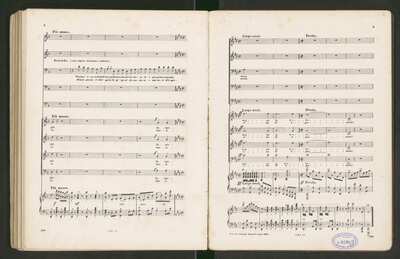 [pl-text:Na stronach [6] i [343] znajdują się okrągłe, niebieskie pieczęci: "Państwowa Wyższa Szkoła muzyczna w Warszawie | BIBLIOTEKA"]., [pl-text: Na stronach [5] i [344] znajdują się niebieskie pieczęci: "BIBLIOTEKA | Państwowego Konserwatorium | MUZYCZNEGO | w Warszawie"].