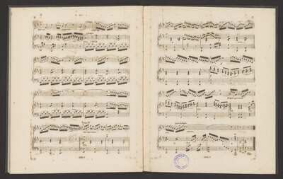 Etude numbers 1-6., [pl-text: Numery etiud 1-6.], Title page; blank page; preface (4 pages); pp. 1-27: score; blank page., [pl-text: Karta tytułowa; pusta strona; przedmowa (4 strony); s. 1-27: partytura; pusta strona.], Print covered with cover added later. On the cover a paper sticker with the notation: "Douze | Etudes | pour Voix de Soprano | par | Just. Geraldi | 1|r| Suite". At the upper corners of the sticker, in different ink, the numbers "1049" and "70" written and crossed out. On the sticker affixed an oval purple stamp crossed out: "BIBLIOTEKA | No | Konserw Muz w Warszawie" with the number "2130". Below the gold oval stamp: "KONSERWATORIUM | MUZYCZNE | W WARSZAWIE". On the back cover a sticker printed: "Biblioteka Państwowej Wyższa | Szkoły Muzycznej - Warszawa" with a current signature below., [pl-text: Druk obłożony okładką dodaną później. Na okładce papierowa naklejka z zapisem: "Douze | Etudes | pour Voix de Soprano | par | Just. Geraldi | 1|r| Suite". W górnych rogach naklejki innym atramentem zapisane i skreślone numery "1049" i "70". Na naklejce umieszczona owalna fioletowa pieczęć przekreślona: "BIBLIOTEKA | No | Konserw Muz w Warszawie" z numerem "2130". Poniżej złota owalna pieczęć: "KONSERWATORIUM | MUZYCZNE | W WARSZAWIE". Na odwrocie okładki naklejka z nadrukiem: "Biblioteka Państwowej Wyższej | Szkoły Muzycznej - Warszawa" z umieszczoną poniżej aktualną sygnaturą.], Oval green stamp: "BIBLIOTEKA | INSTYTUTU | MUZYCZNEGO" on title page; black stamp: "W WARSZAWIE | u F|R|: SPIESS i KOMP: | Ulica Senatorska N|o|460." on title page; oval violet stamp: "BIBLIOTEKA | No | Konserw Muz w Warszawie" with number "2130" on p. 1; blue/purple round stamp: "Państwowa Wyższa Szkoła Muzyczna w Warszawie | BIBLIOTEKA | Nr" with number "28724" on p. 1; no number on pp. 9, 27; small, blue, rectangular stamp: "BIBLIOTEKA GŁ. | AM im. Fr. Chopina | w Warszawie" on p. 17., [pl-text: Owalna zielona pieczęć: "BIBLIOTEKA | INSTYTUTU | MUZYCZNEGO" na k. tytułowej; czarna pieczęć: "W WARSZAWIE | u F|R|: SPIESS i KOMP: | Ulica Senatorska N|o|460." na k. tytułowej; owalna fioletowa pieczęć: "BIBLIOTEKA | No | Konserw Muz w Warszawie" z numerem "2130" na str. 1; okrągła niebieska/fioletowa pieczęć: "Państwowa Wyższa Szkoła Muzyczna w Warszawie | BIBLIOTEKA |Nr" z numerem "28724" na str. 1; bez numeru na str. 9, 27; mała, niebieska, prostokątna pieczęć: "BIBLIOTEKA GŁ. | AM im. Fr. Chopina | w Warszawie" na str. 17.], [pl-text: Owalna fioletowa pieczęć przekreślona: "BIBLIOTEKA | No | Konserw Muz w Warszawie".] 51043247, [pl-text: Owalna zielona pieczęć: "BIBLIOTEKA | INSTYTUTU | MUZYCZNEGO".] 51043247, [pl-text: Czarna pieczęć: "W WARSZAWIE | u F|R|: SPIESS i KOMP: | Ulica Senatorska N|o|460.".] 51043247