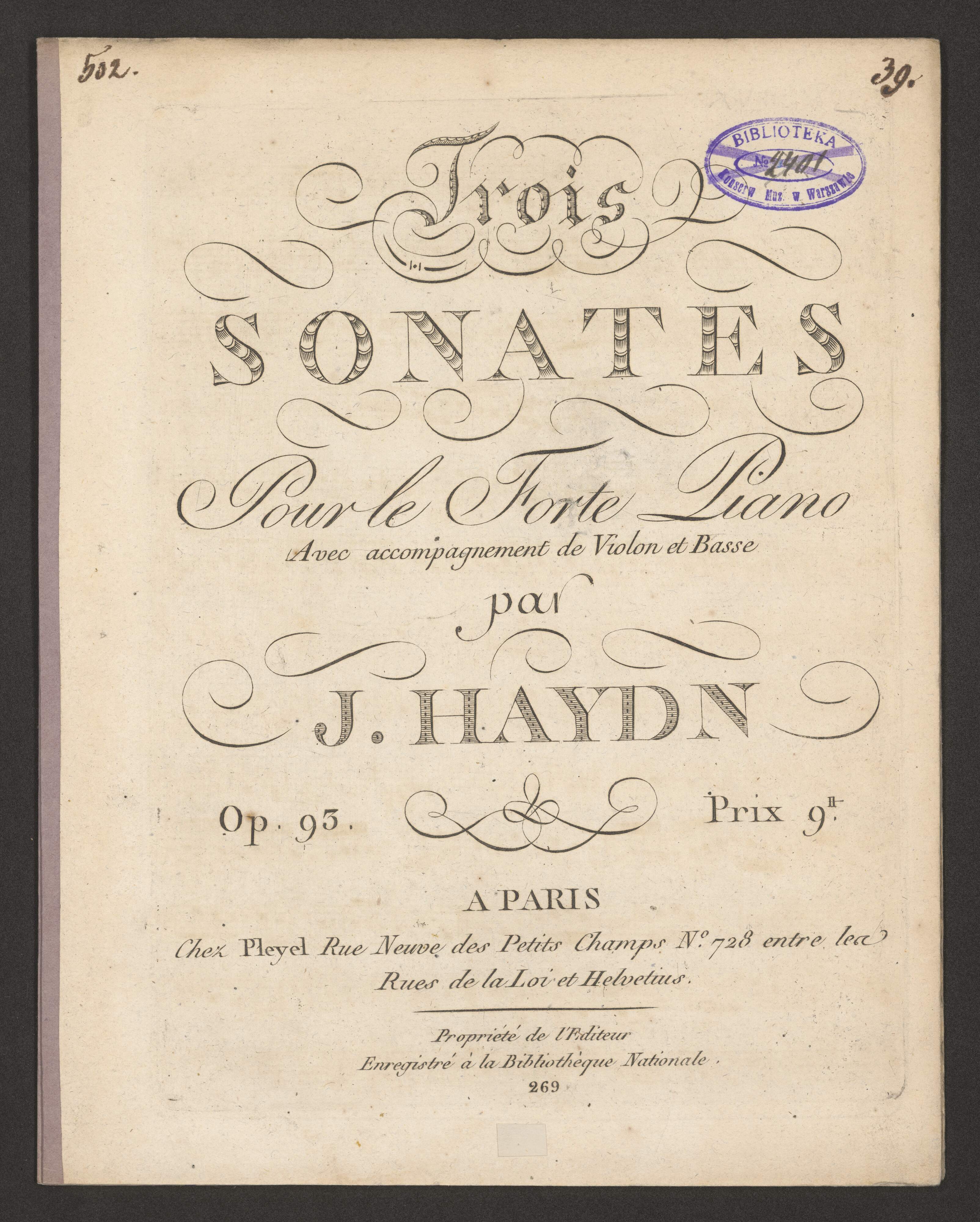 Trois sonates pour le forte-piano avec accompagnement de violon et basse ... op. 93 [Paris, Pleyel]
