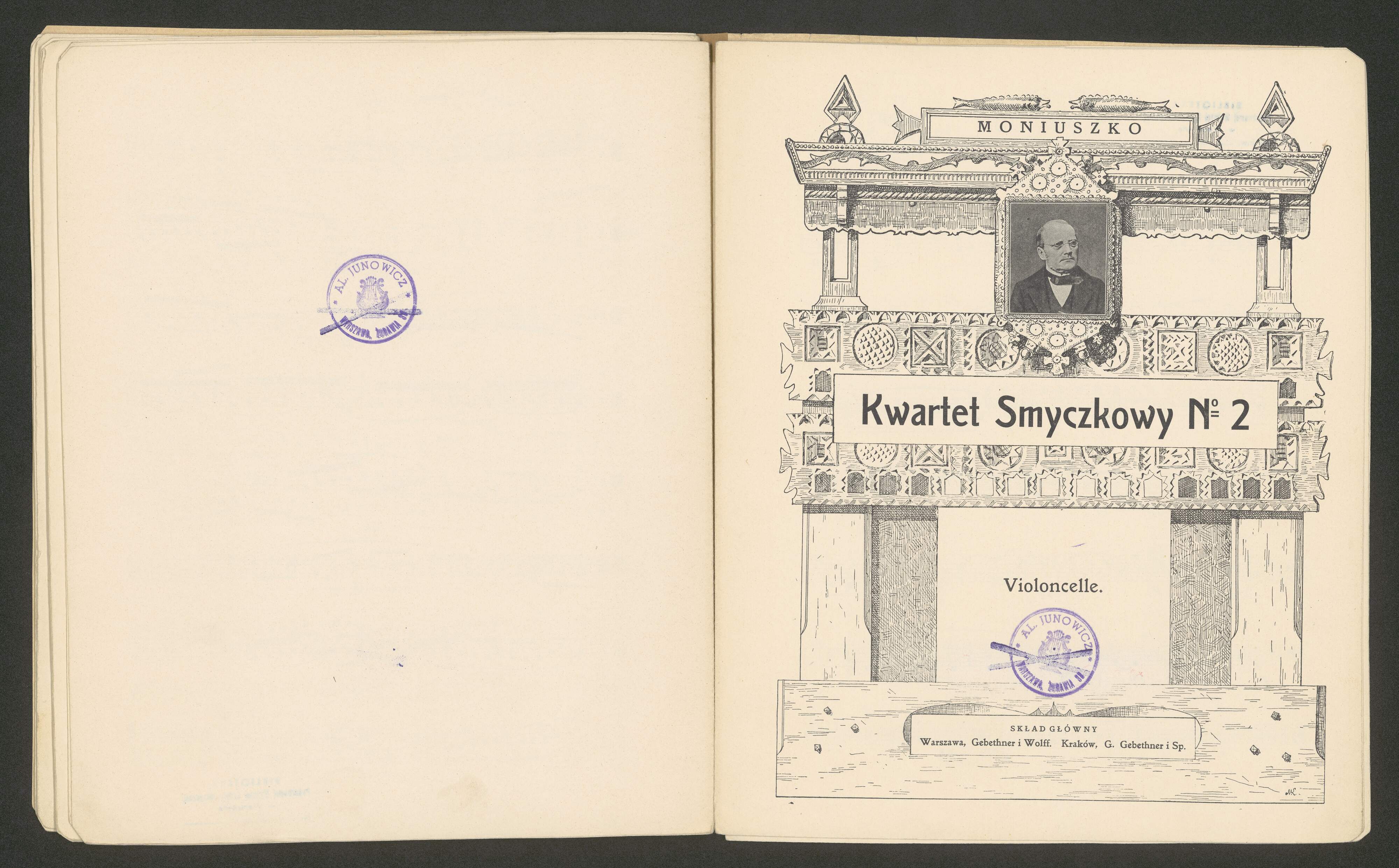 MONIUSZKO | Kwartet Smyczkowy N|o.2 | WYDAWNICTWO I WŁASNOŚĆ | SEKCYI IMIENIA | Stanisława Moniuszki | PRZY | WARSZAWSKIEM TOWARZYSTWIE | MUZYCZNEM | Cena rb. 2. - netto. | SKŁAD GŁÓWNY | Warszawa, Gebethner i Wolff. Kraków, G. Gebethner i Sp