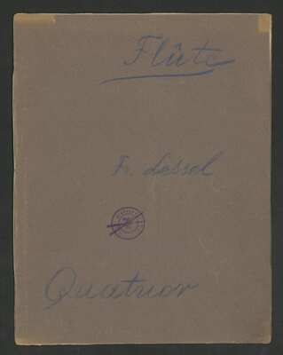 [pl-text: W druku znajdują się odpowiednio partie: fletu, skrzypiec, altówki i wiolonczeli]., [pl-text: Na odwrocie przedniej okładki zapisano części utworu: I. Allegro assai, II. Adagio, III. Menuetto Allegro. IV. Allegretto Var. Coda Allegro].