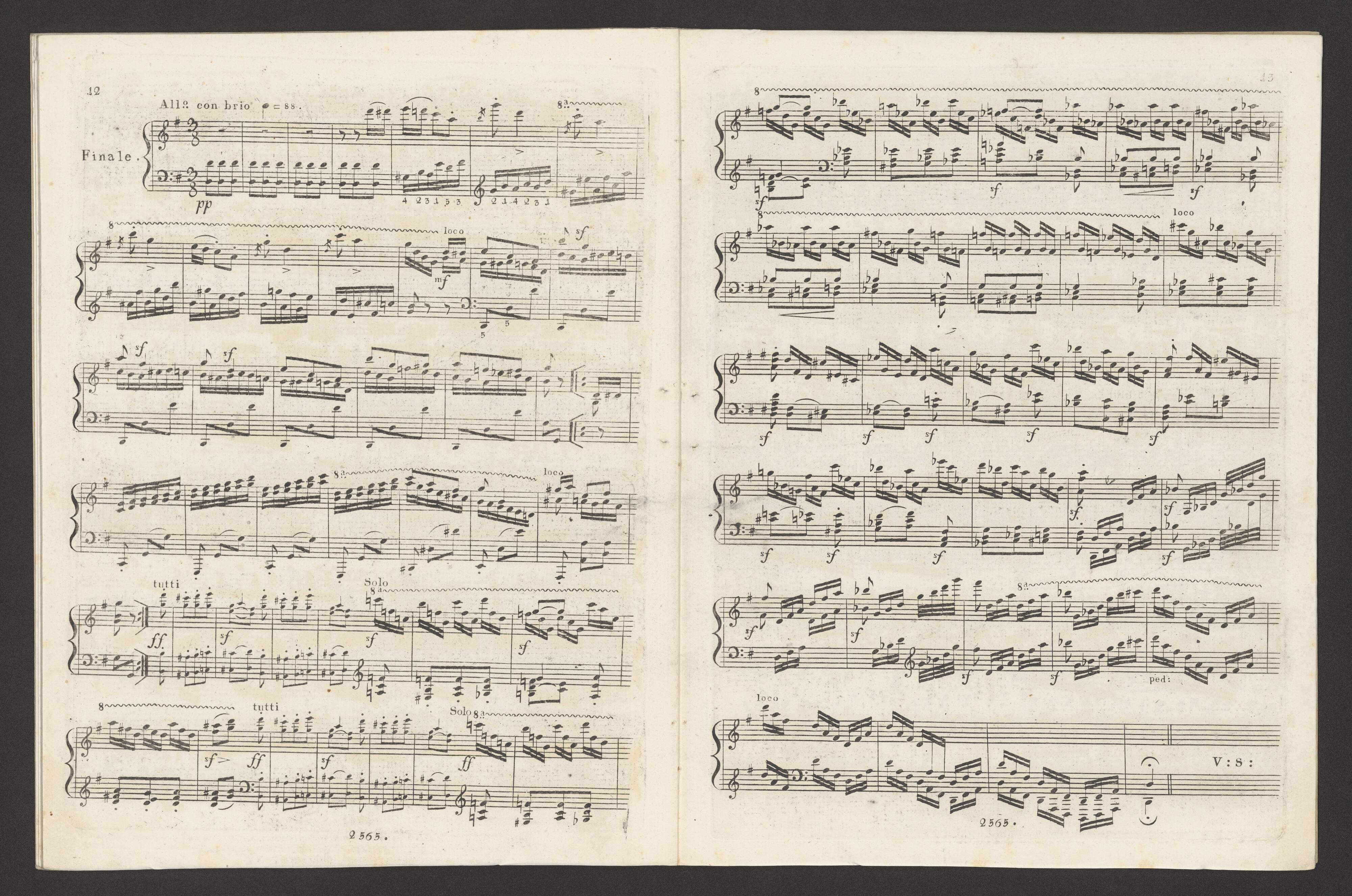[title page:] GRANDES VARIATIONS | pour le | Piano-Forte | avec accompagnement | de deux Violons, Alto, Violoncelle, et Contrebasse (:ad libitum:) | sur une melodie nationale autrichienne | COMPOSÉES et DEDIÉES | À MADEMOISELLE | MARIE D'ADAMOVICS DE CSEPIN | par | Ignace Moscheles. | Oeuvre 42. | Ces Variations peuvent être exécutées sans accompagnement, | en jouant toutes les petites motes marquées. | N|o| 2565. [space] à Vienne chez Artaria et Comp