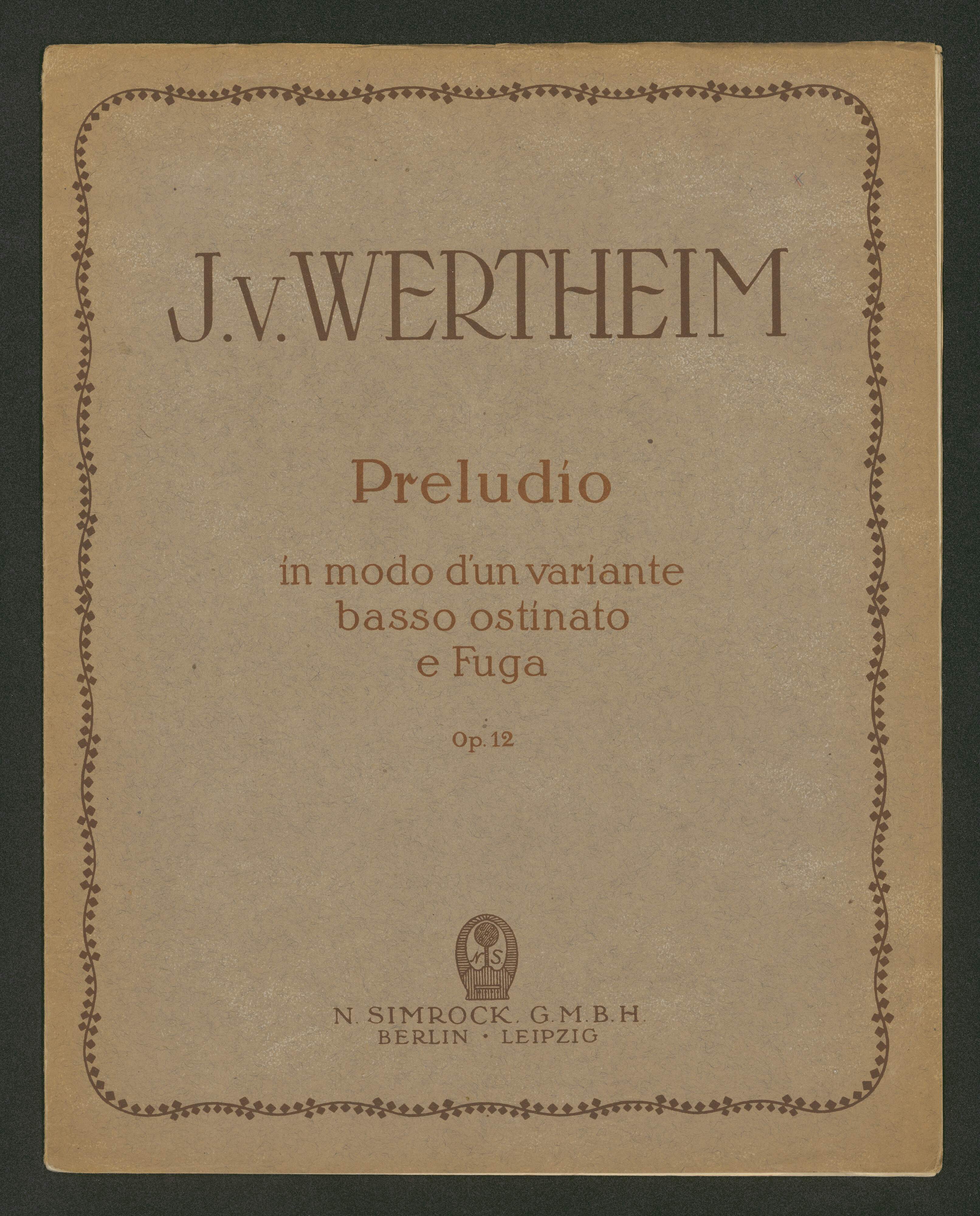 [cover title:] J. v. WERTHEIM | Preludio | in modo d'un variante | basso ostinato | e Fuga | Op. 12 | N. SIMROCK. G. M. B. H. | BERLIN * LEIPZIG