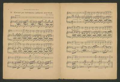 [pl-text: W kolekcji znajdują się trzy pieśni: 1) Między nami nic nie było; 2) Kwiat po kwieciu jakbym zrywał; 3) Leci piosenka, [pl-text: Na stronie tytułowej pieczątka: "K. SZADKOWSKI | SKŁAD NUT | Warszawa | Marszałkowska 58.]